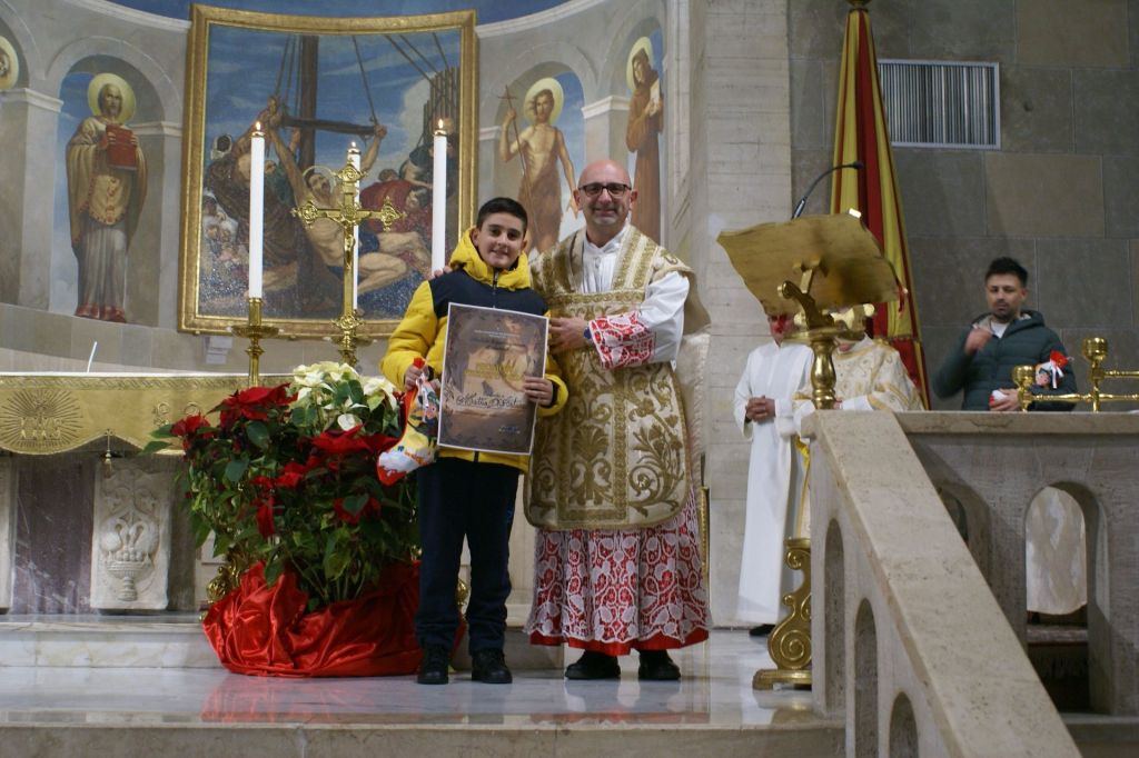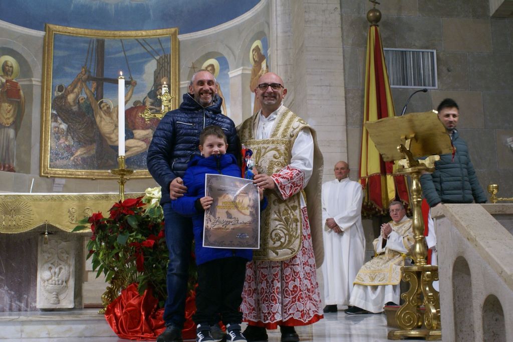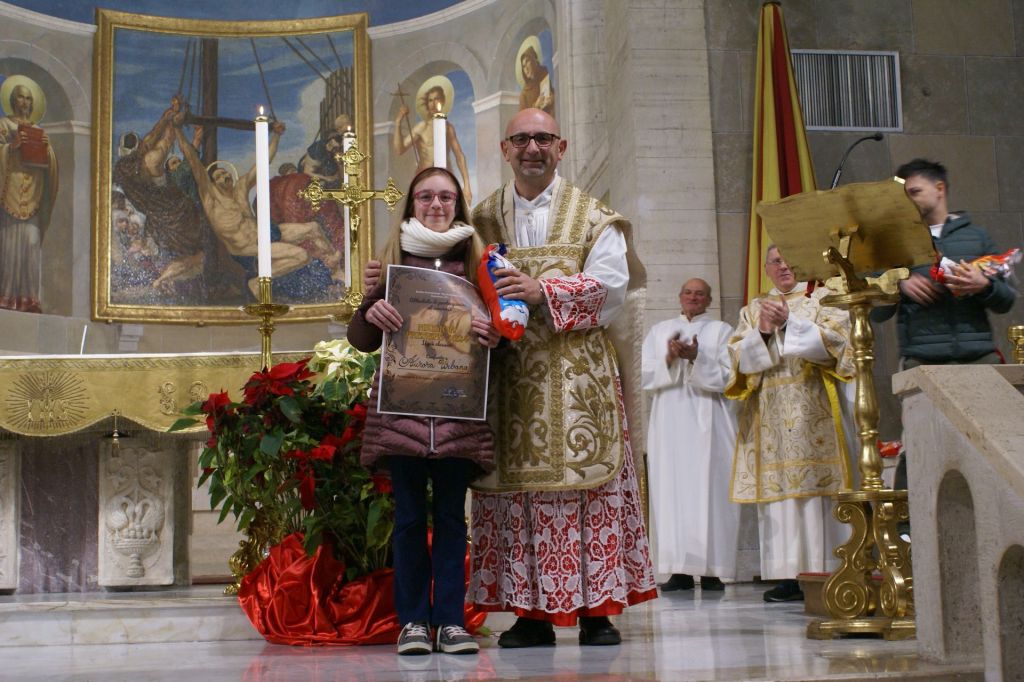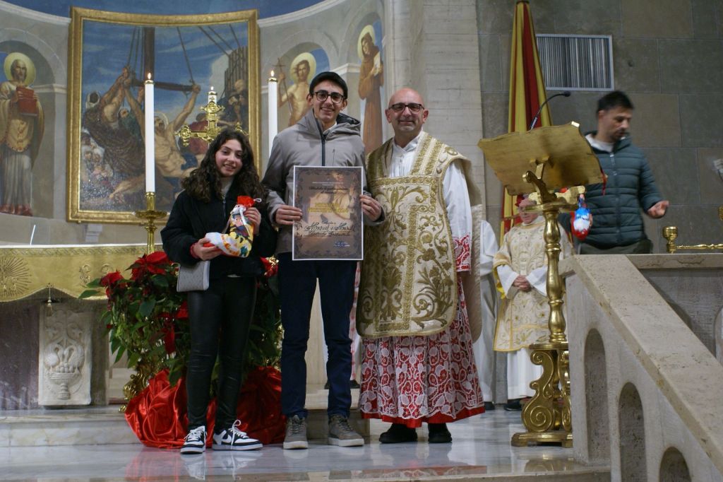 Questa sera, al termine della Celebrazione Eucaristica delle 17,30, c’è stata la premiazione dei vincitori del concorso. Il parroco don Eric ha consegnato agli iscritti l’attestato di partecipazione e una calza della Befana piena di dolci vari. Un premio speciale, fuori concorso, anche per Manuel e il maestro Rocco.