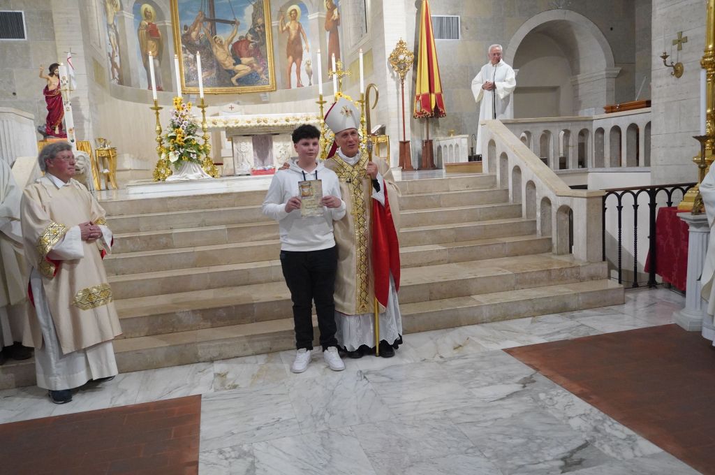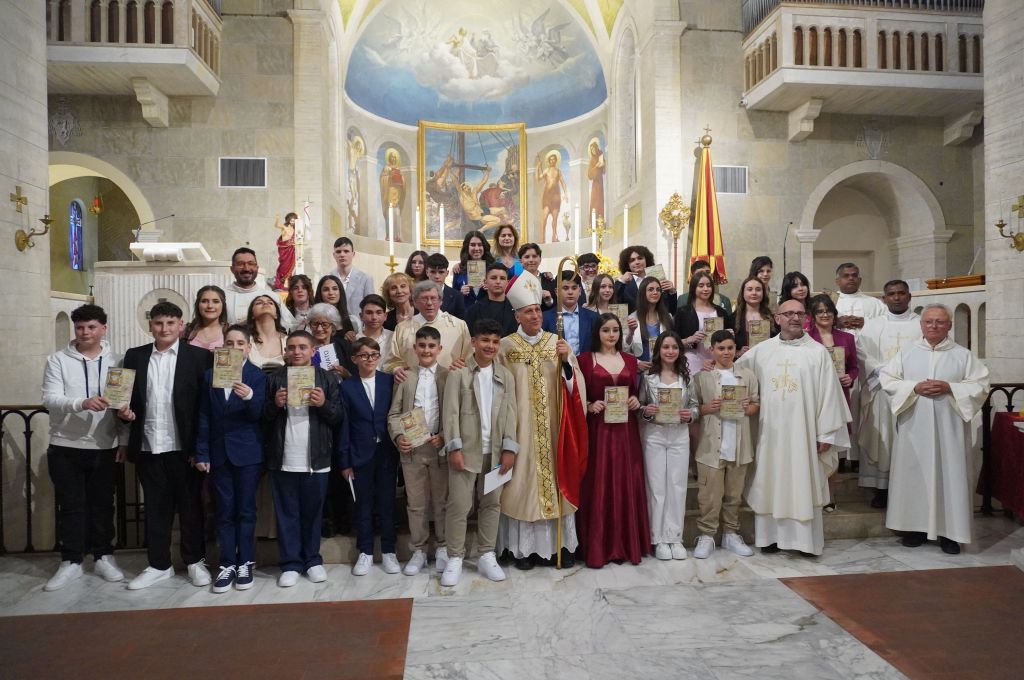 Una gioiosa atmosfera di festa era diffusa ieri in Cattedrale dove più di trenta ragazzi, della parrocchia di San Bartolomeo e anche delle altre parrocchie di Pontecorvo, hanno ricevuto il Sacramento della Confermazione impartito dal nostro Vescovo S.E. Mons. Gerardo Antonazzo. Hanno concelebrato con il Vescovo don Eric e Padre Giuseppe, mentre la Corale Polifonica della Cattedrale ha eseguito i canti liturgici. Al termine della cerimonia la consegna degli attestati e di un piccolo dono del vescovo con consuete foto di rito.