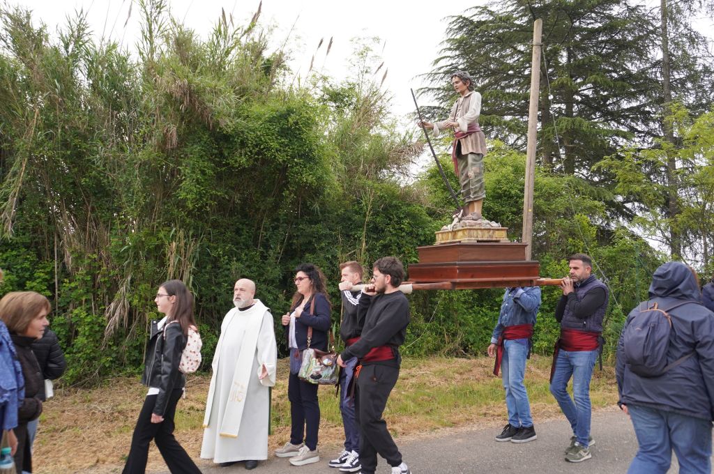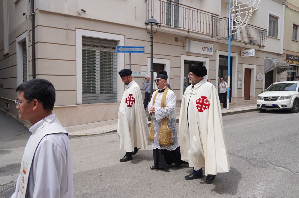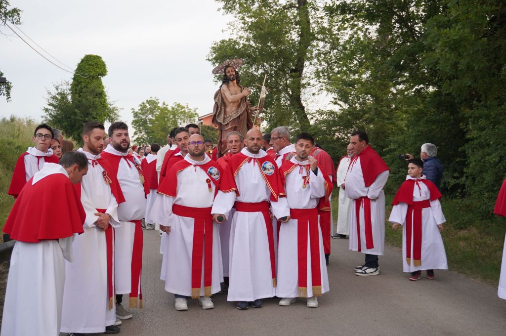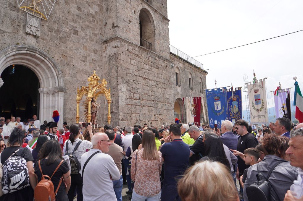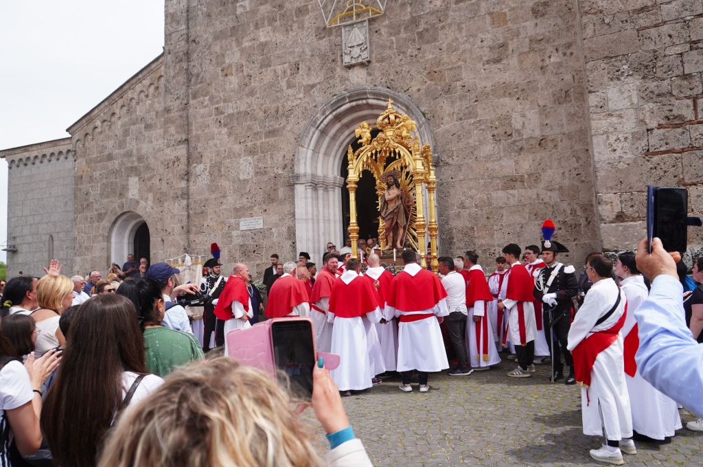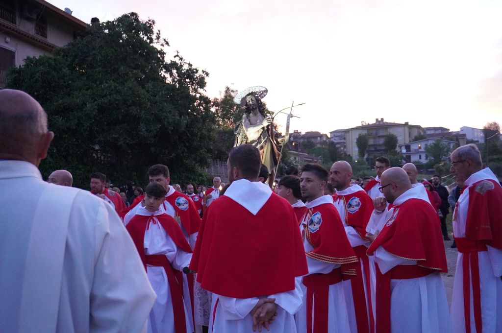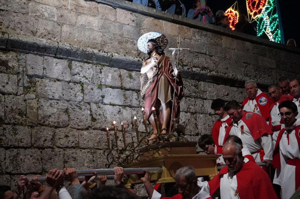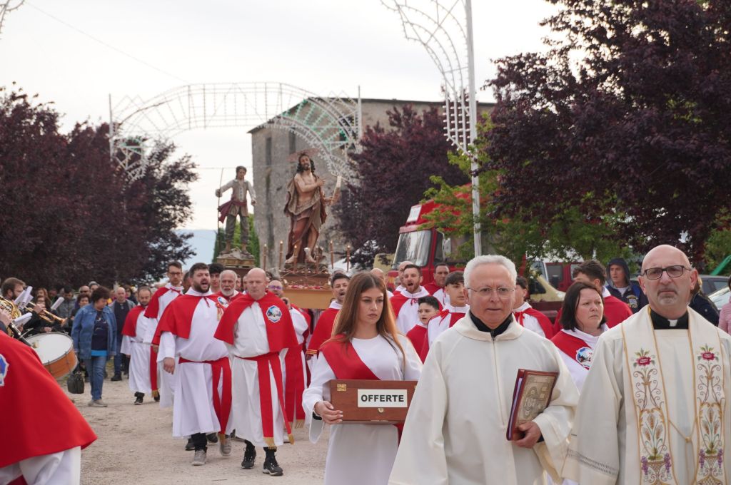 Domenica 11 Maggio: che giornata!! Sveglia alle 3 del mattino per essere puntuali alla Messa delle 4.00 in Cattedrale. Al termine della celebrazione tutti in processione con la statua del Santo verso il luogo dell’apparizione in contrada Melfi (sono circa 5 Km). All’arrivo, incontro simbolico tra San Giovanni Battista e Giovanni Mele e Celebrazione Eucaristica presieduta dal nostro Vescovo S.E. Mons. Gerardo Antonazzo. Verso le 11.00 si riparte in processione per rientrare con la statua a Pontecorvo nella Cattedrale. La benedizione del nostro parroco don Eric sul sagrato della chiesa, i fuochi d’artificio e i canti tradizionali popolari hanno concluso la giornata in onore del nostro Santo Patrono.