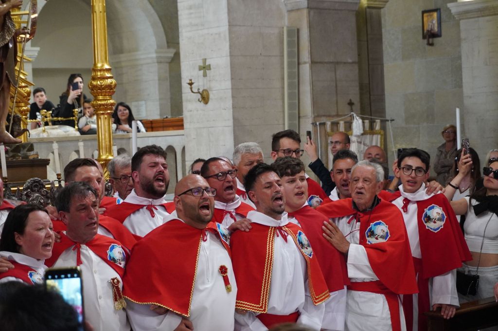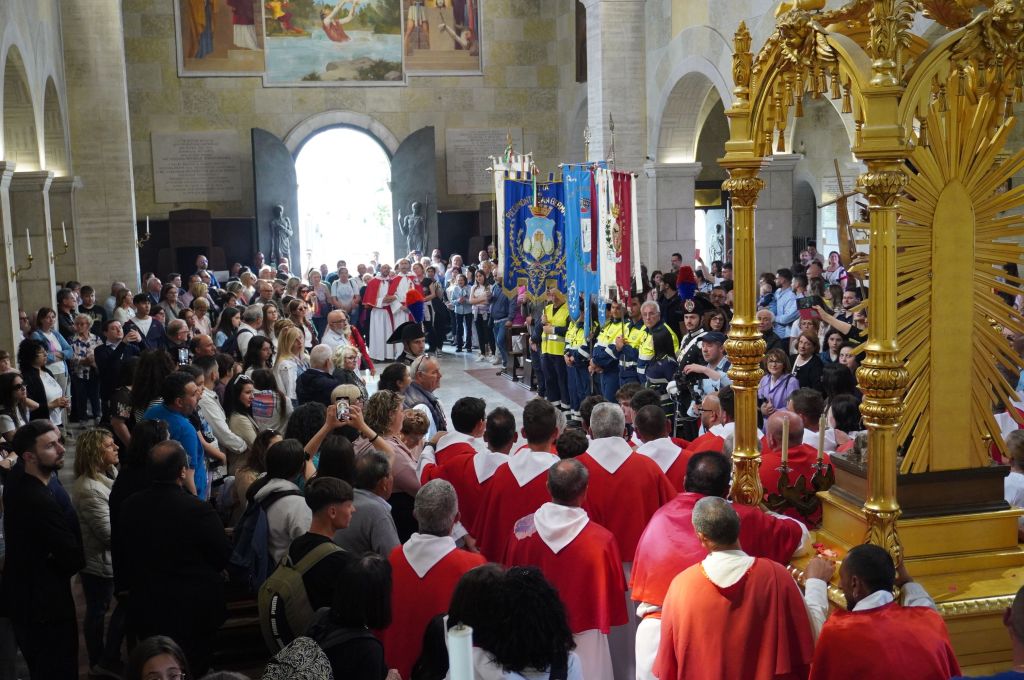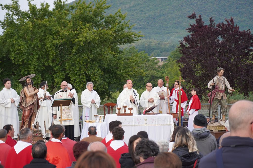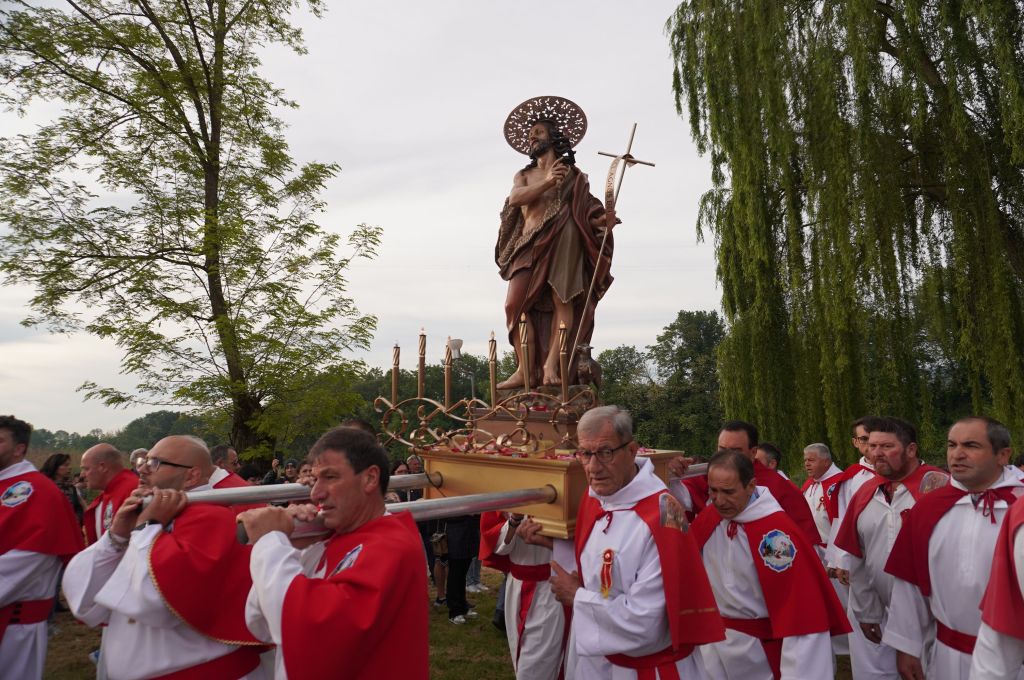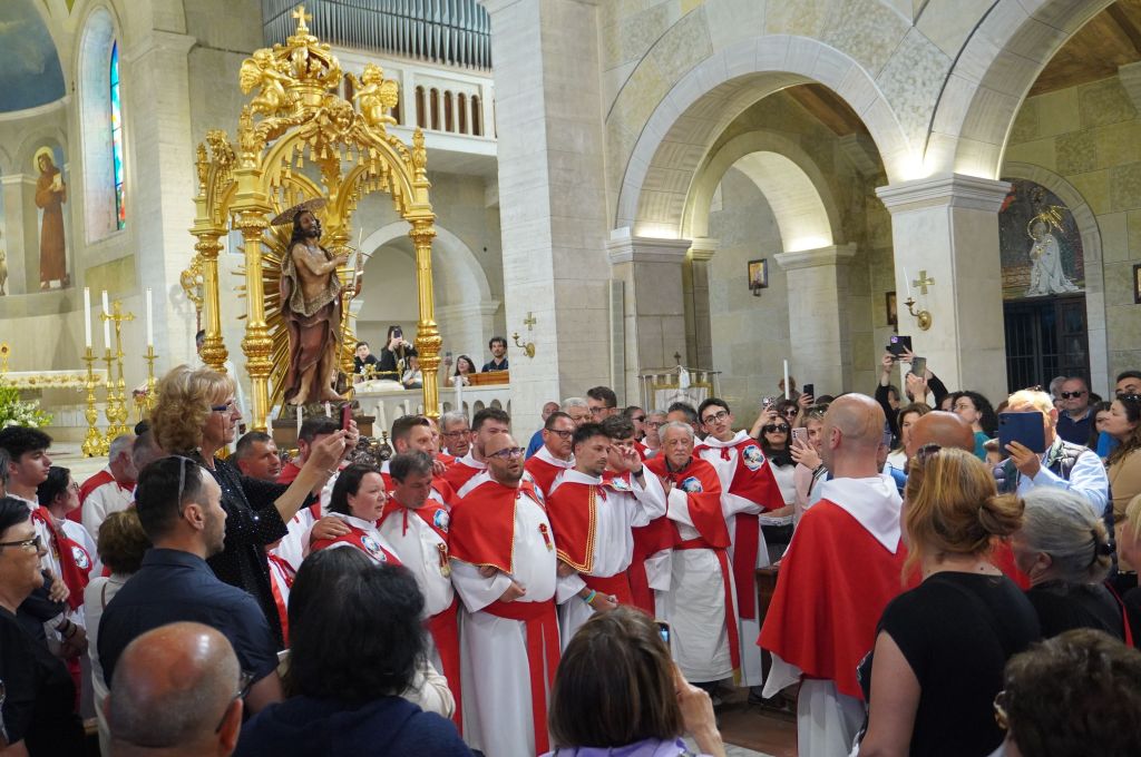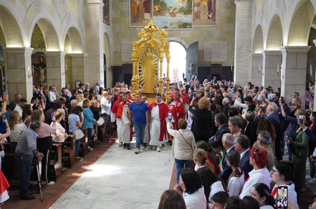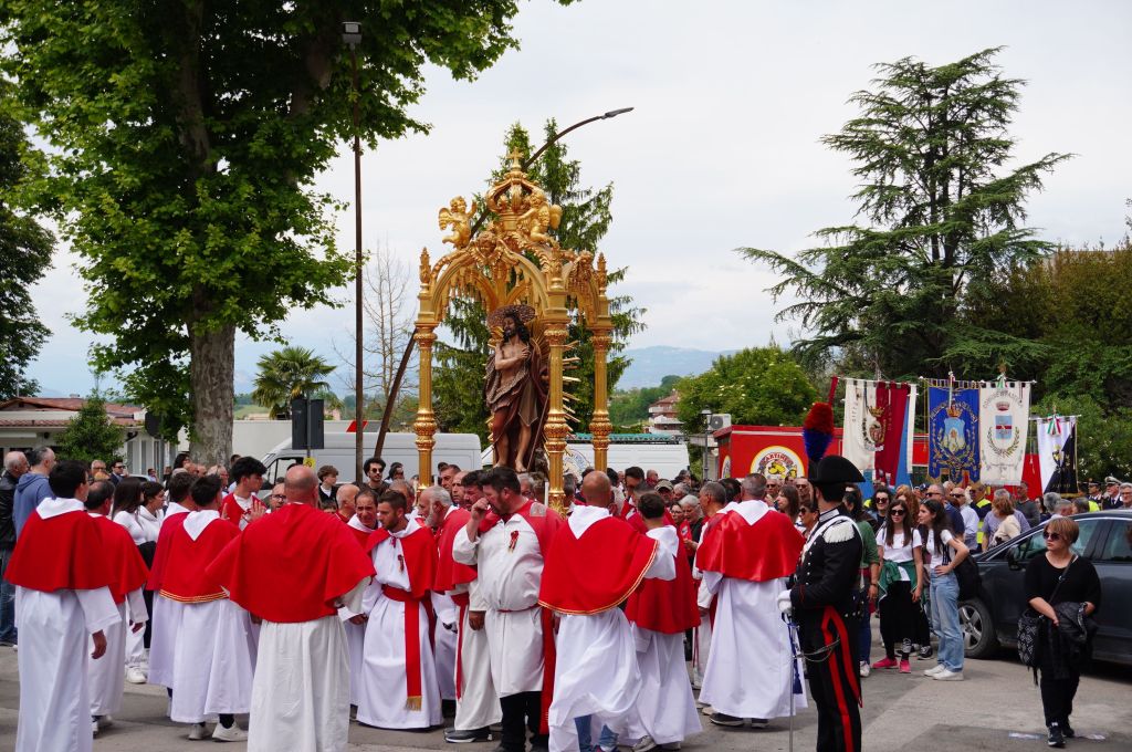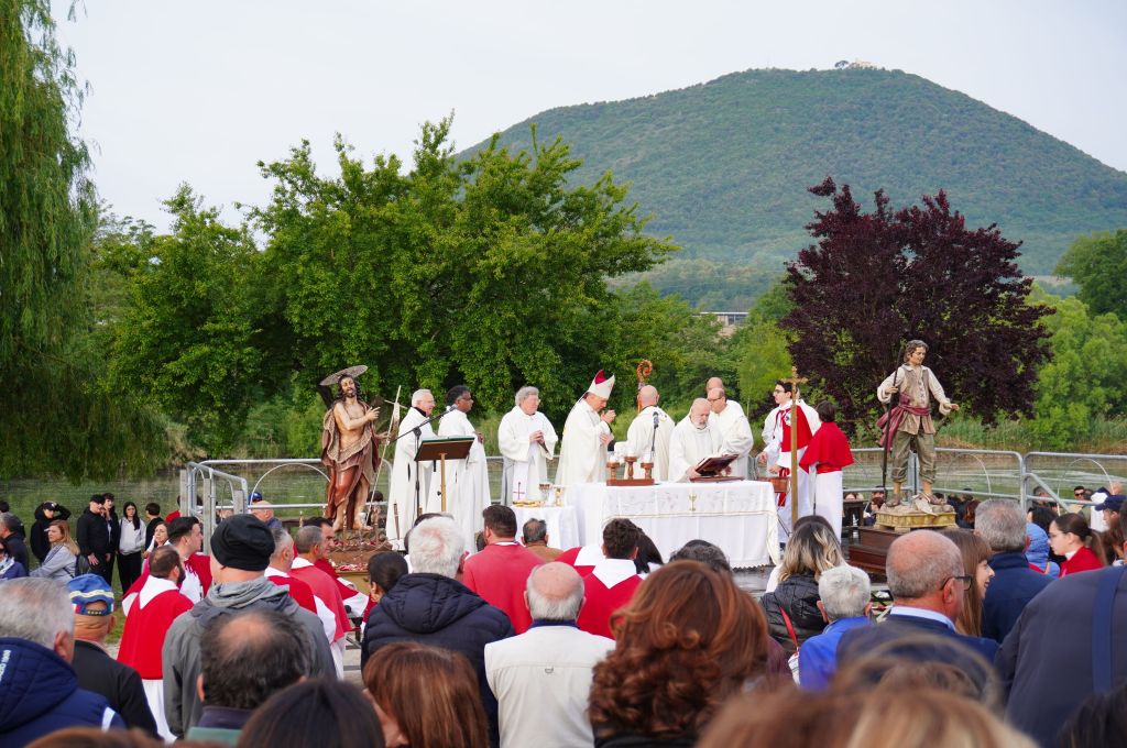 Domenica 11 Maggio: che giornata!! Sveglia alle 3 del mattino per essere puntuali alla Messa delle 4.00 in Cattedrale. Al termine della celebrazione tutti in processione con la statua del Santo verso il luogo dell’apparizione in contrada Melfi (sono circa 5 Km). All’arrivo, incontro simbolico tra San Giovanni Battista e Giovanni Mele e Celebrazione Eucaristica presieduta dal nostro Vescovo S.E. Mons. Gerardo Antonazzo. Verso le 11.00 si riparte in processione per rientrare con la statua a Pontecorvo nella Cattedrale. La benedizione del nostro parroco don Eric sul sagrato della chiesa, i fuochi d’artificio e i canti tradizionali popolari hanno concluso la giornata in onore del nostro Santo Patrono.