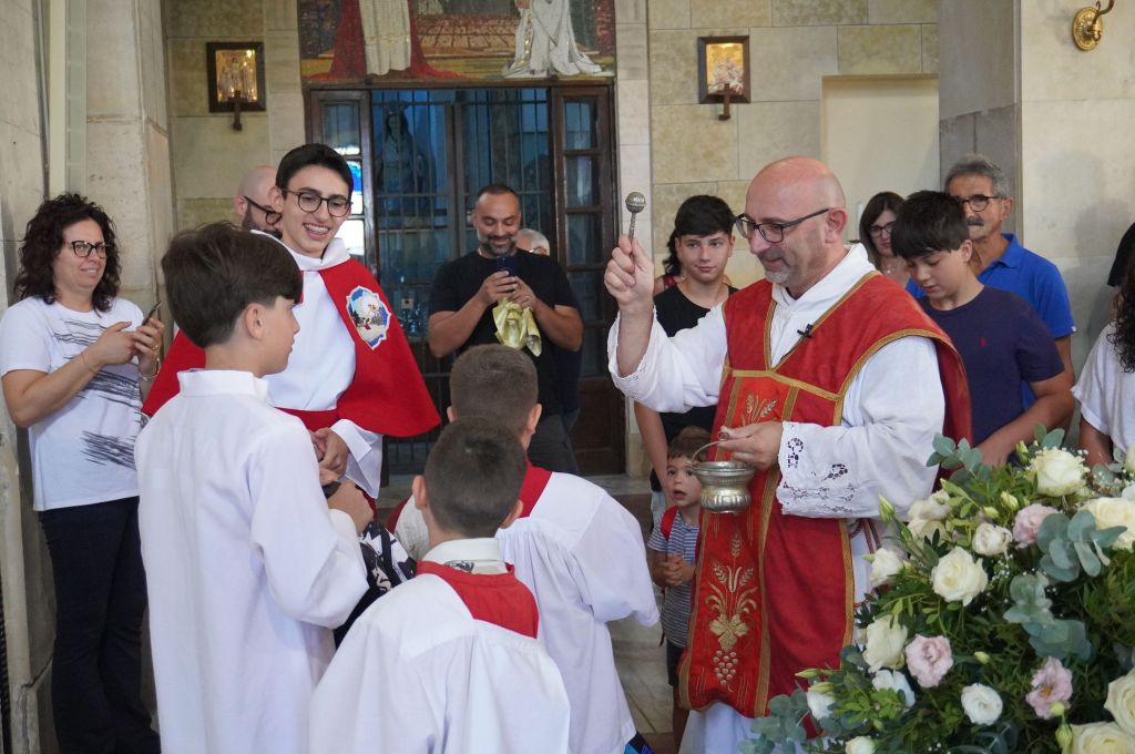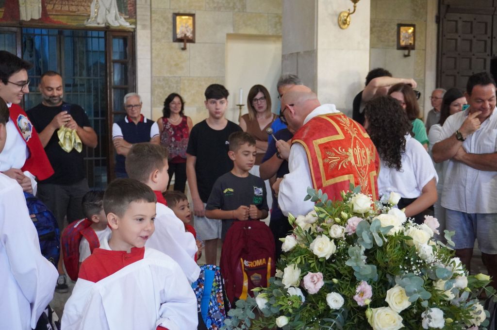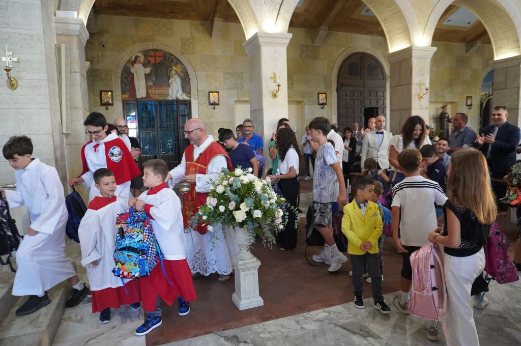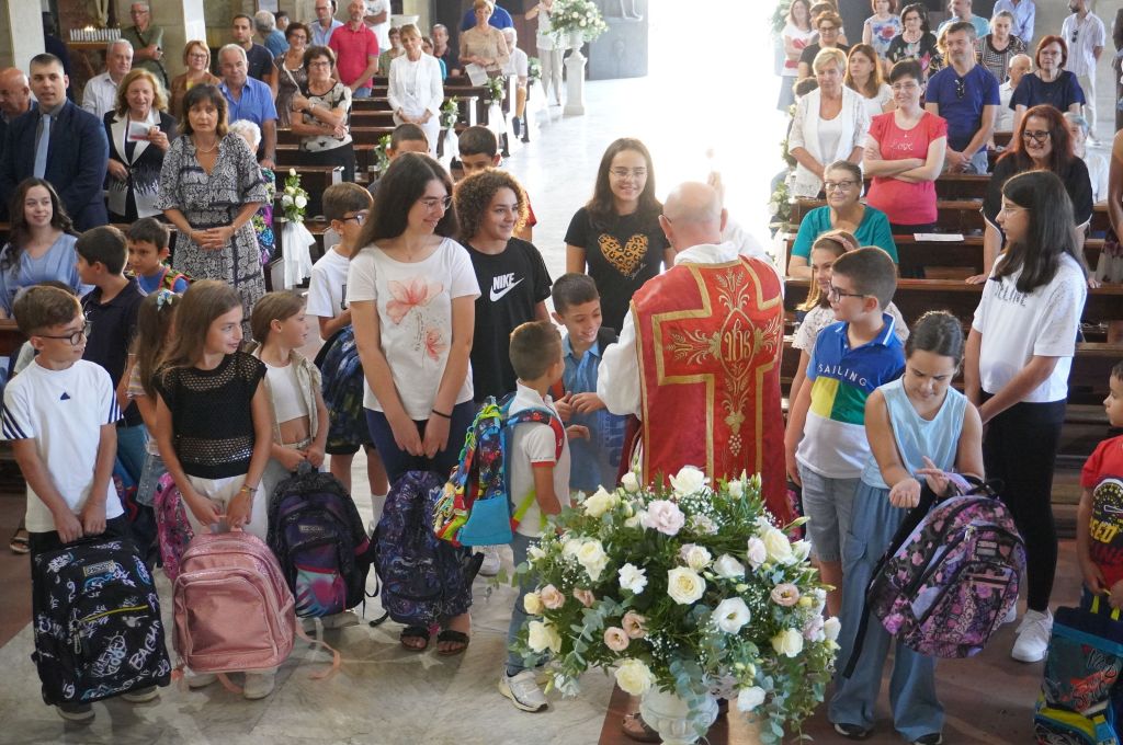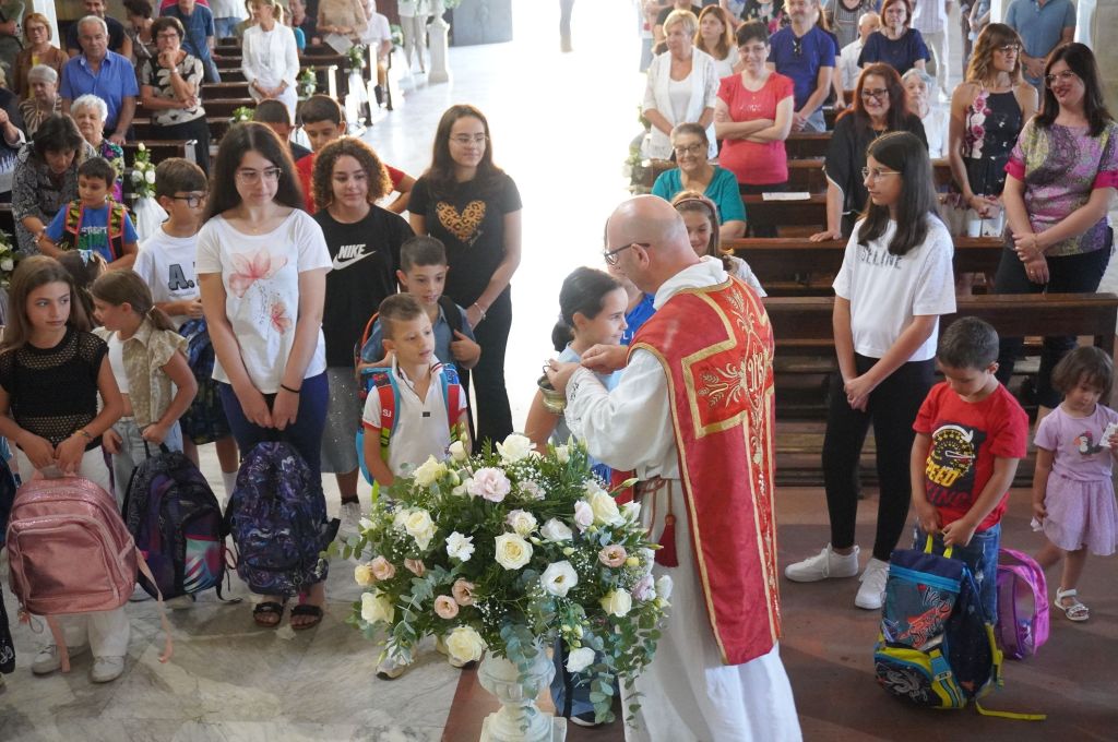 Numerosi insegnanti e ragazzi con le loro famiglie hanno partecipato oggi alla Santa Messa delle 10,30 in Concattedrale per invocare la protezione del Signore per il nuovo anno scolastico appena cominciato. Durante la Celebrazione, dopo aver recitato la particolare preghiera al Signore, il parroco ha impartito la benedizione ai ragazzi radunati ai piedi dell’altare con i loro zainetti ben in evidenza.
