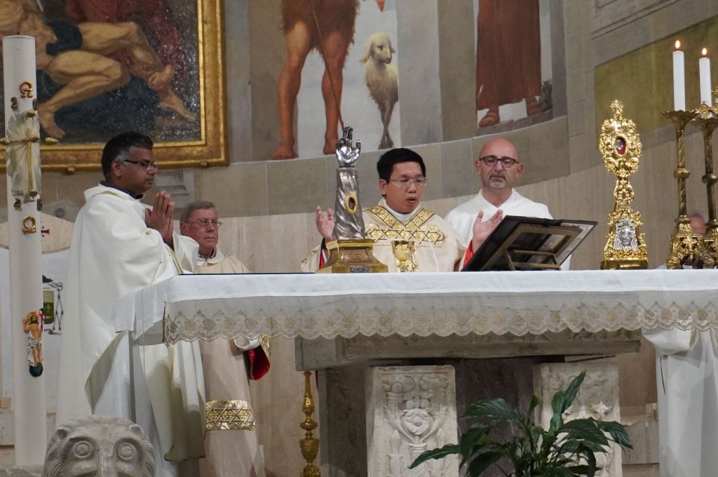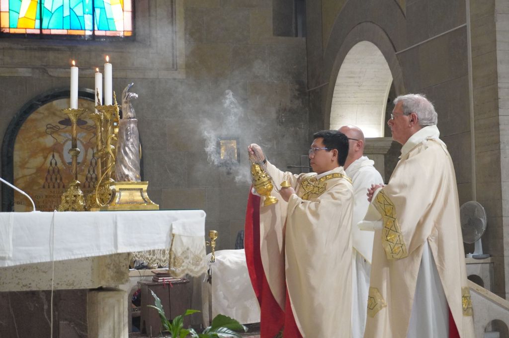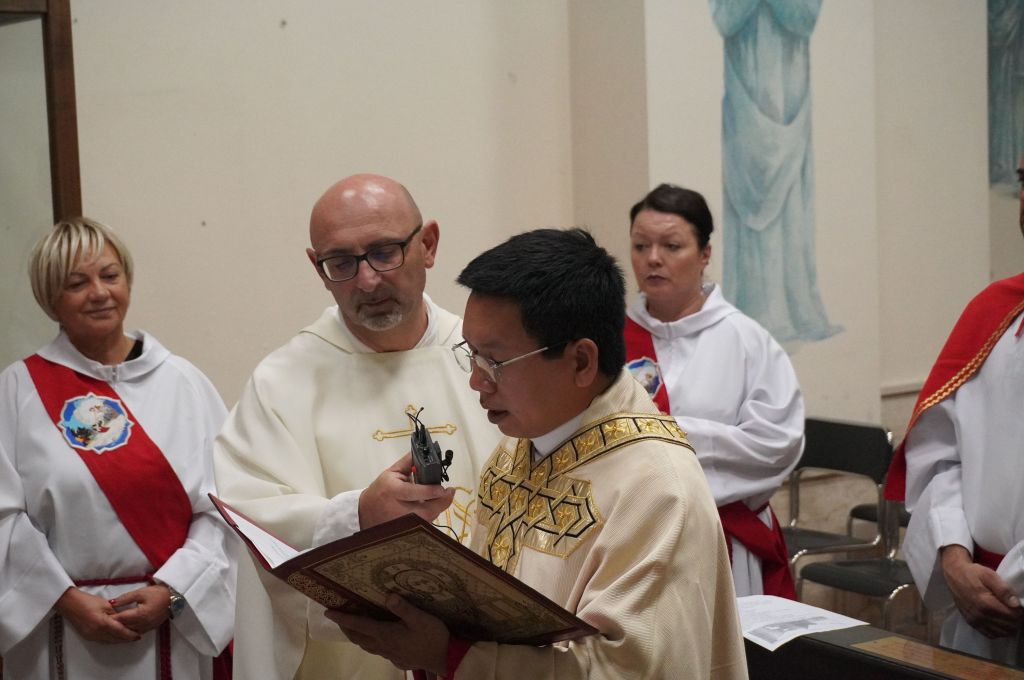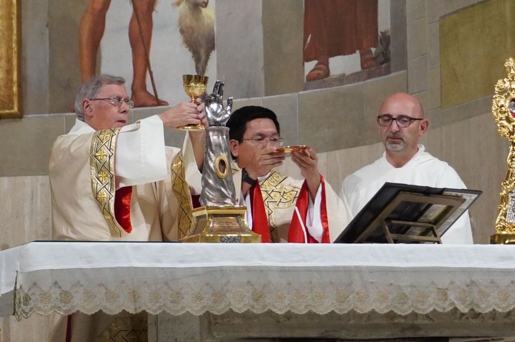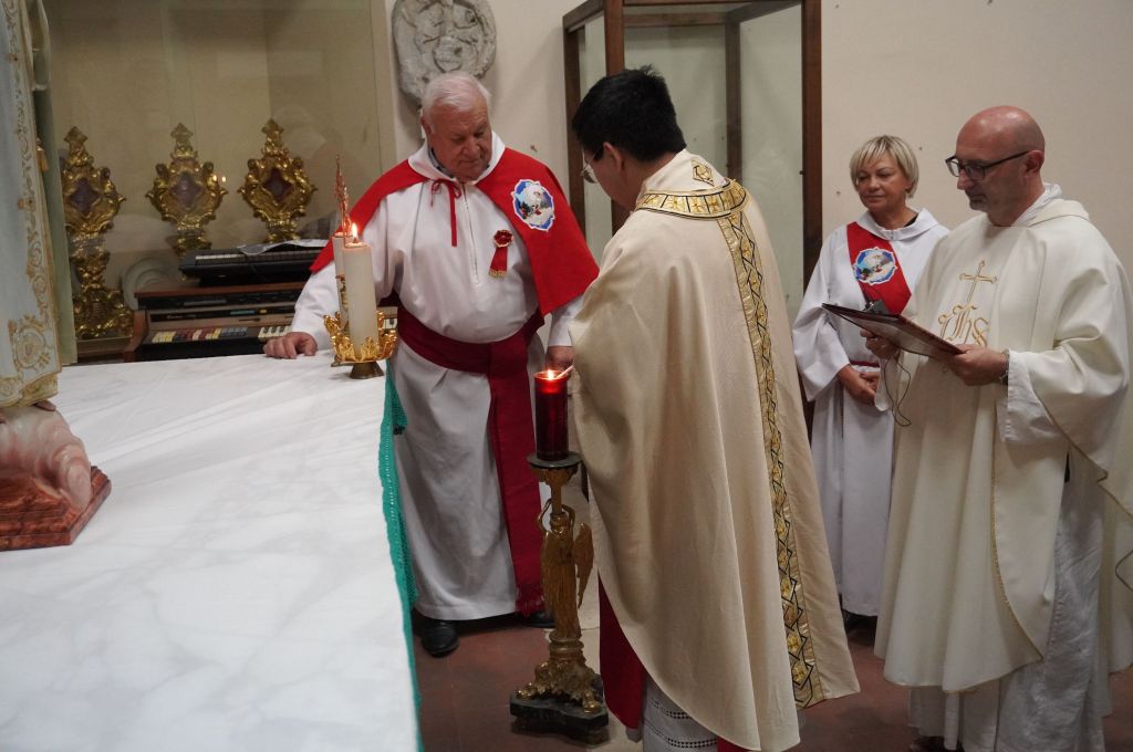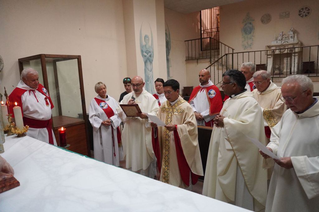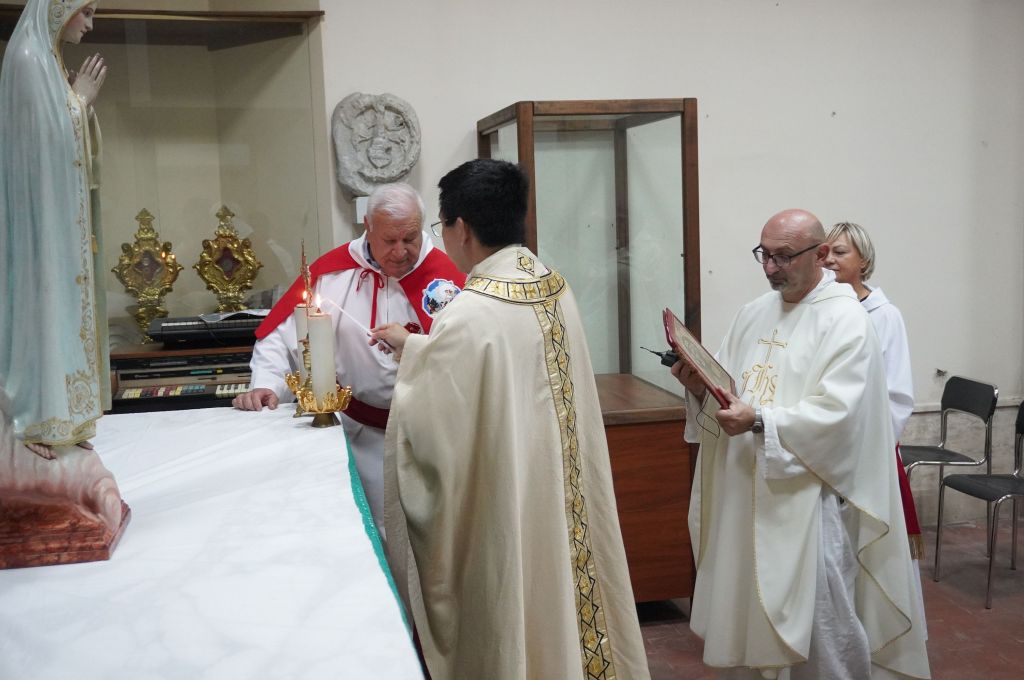 Alla fine del mese di Settembre si celebra la festa di San Grimoaldo, compatrono della concattedrale e patrono degli agricoltori. La Celebrazione Eucaristica delle 18,30 è stata presieduta da Padre Vincenzo, della Congregazione dei Missionari della Fede, da poco ordinato sacerdote, e concelebrata dal nostro parroco don Eric e da Padre Giuseppe, anch’egli dei Missionari della Fede. Durante la celebrazione alcuni rappresentanti degli agricoltori di Pontecorvo hanno portato i semi dei prodotti della terra ai piedi dell’altare per il rito della “Benedizione dei semi” . A conclusione della celebrazione i sacerdoti sono scesi nella cripta, dove è deposto il corpo di San Grimoaldo, per l’accensione della lampada votiva.