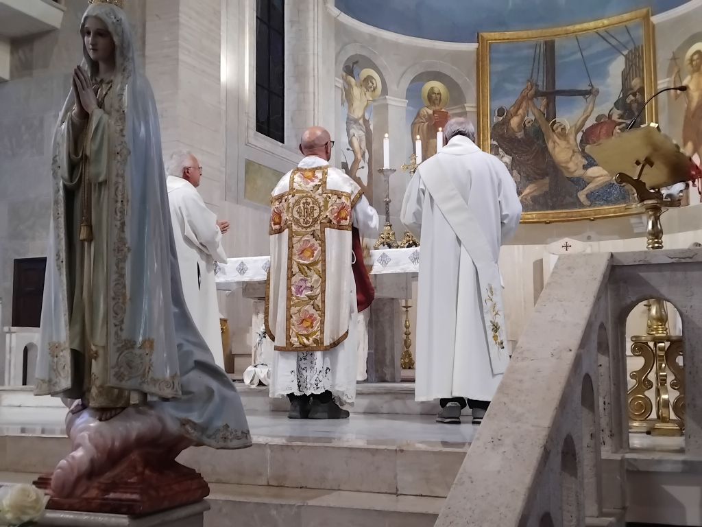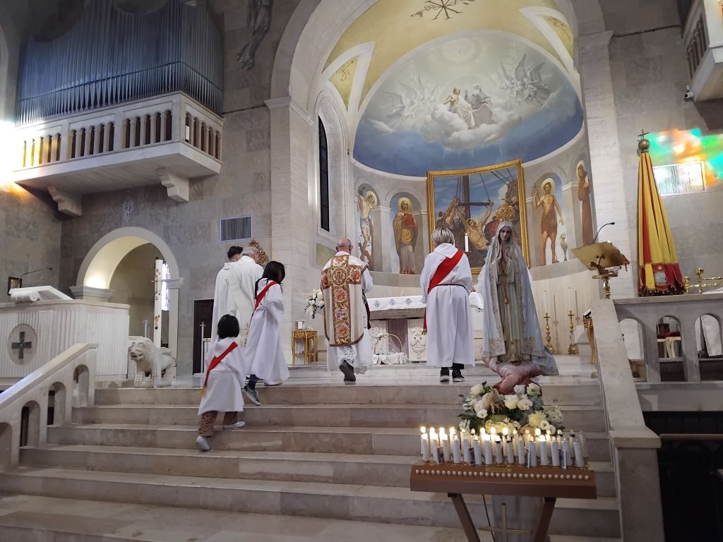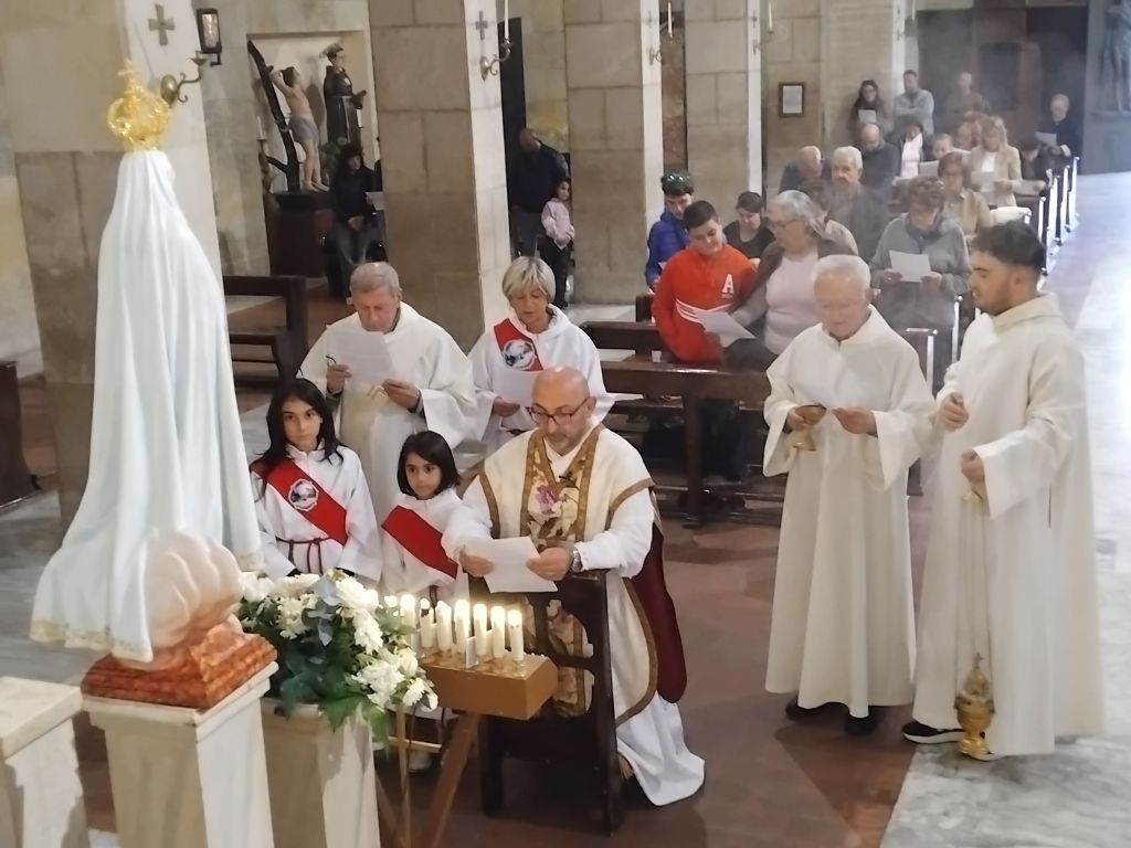 Le celebrazioni in onore della Madonna di Fatima, nella ricorrenza della sesta ed ultima apparizione ai tre pastorelli, iniziate con la Novena, si sono concluse ieri con la Solenne Celebrazione Eucaristica delle 17,30 in Cattedrale. Durante della funzione, allietata dai canti eseguiti dalla Corale Polifonica della Cattedrale, il parroco e i fedeli hanno recitato la “Supplica alla Madonna” . Al termine il parroco don Eric ha distribuito ai bambini presenti un piccolo ricordino.