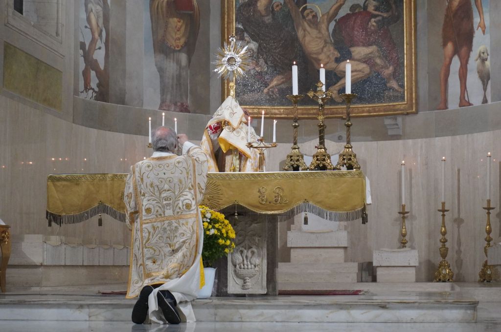 Con la festività di oggi si chiude l’anno liturgico. il nuovo anno inizierà domenica prossima con la prima domenica di Avvento. La festività fu istituita nel 1925 da Pio XI, nell’ enciclica “Quas primas”, in occasione del 1600° anniversario del primo concilio ecumenico di Nicea. La celebrazione è iniziata con l’esposizione del Santissimo Sacramento e la recita solenne dei Vespri, cui ha fatto seguito la Messa Solenne.