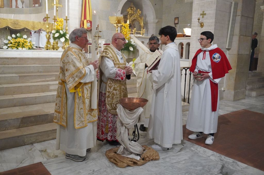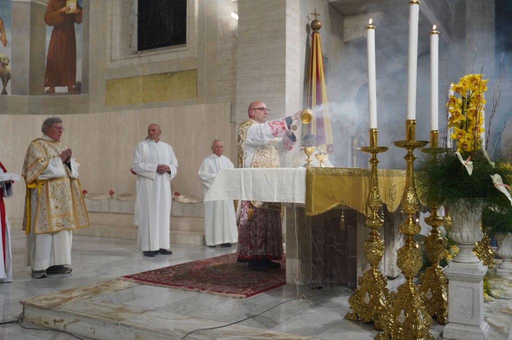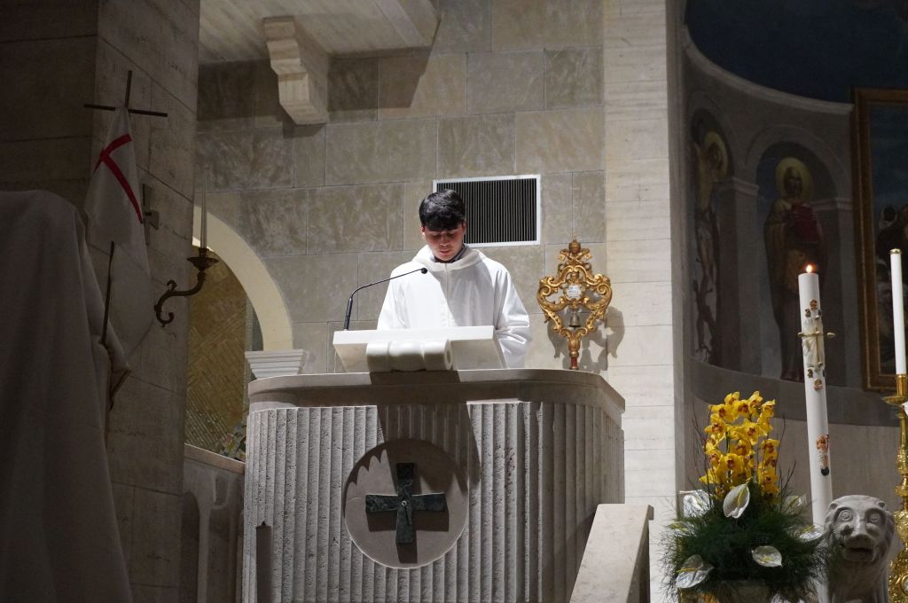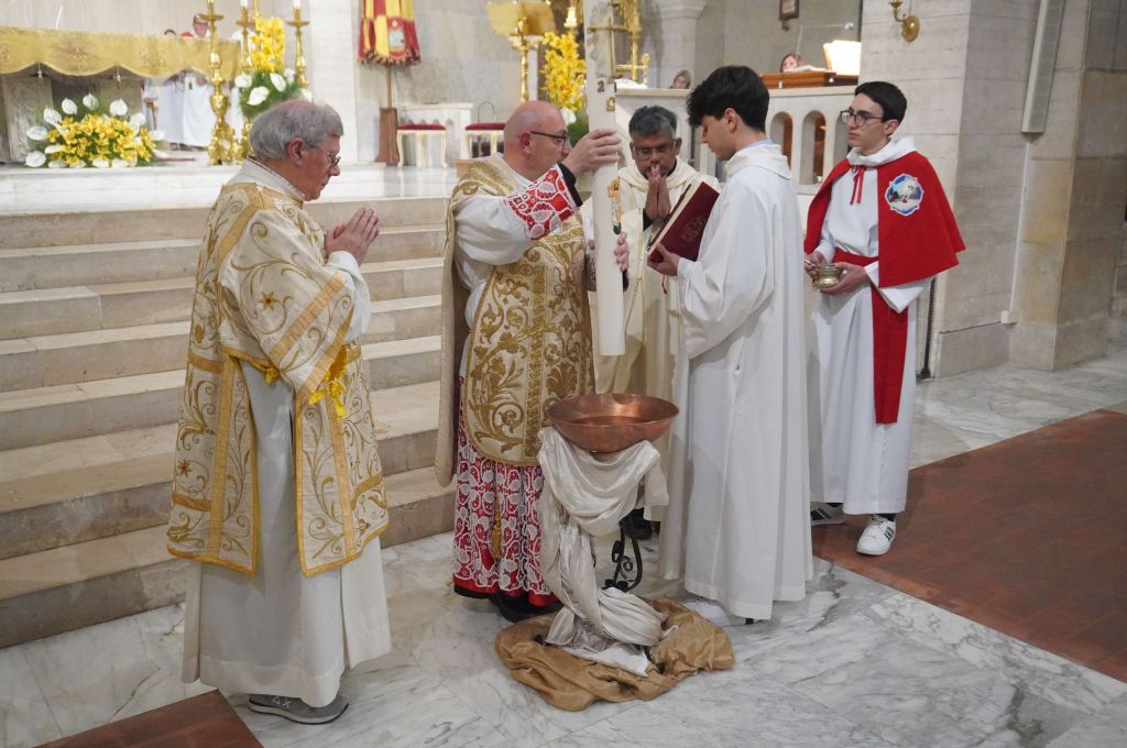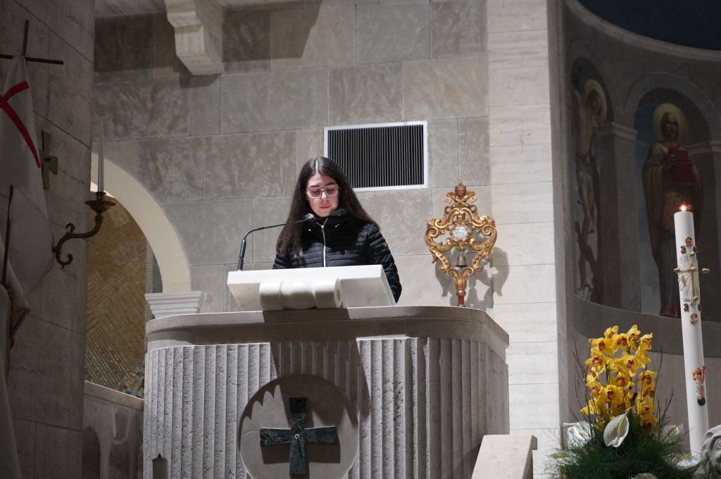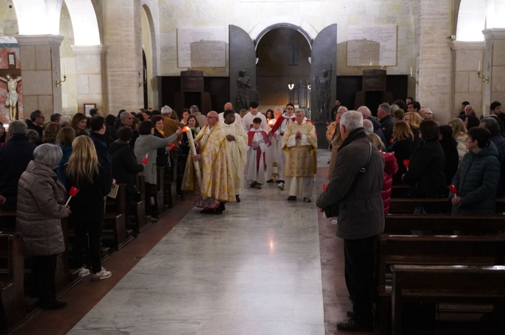 La Veglia Pasquale comincia così, con la benedizione del fuoco sul sagrato della chiesa, e con il fuoco benedetto si accende il cero pasquale, e con la brace si prepara il turibolo per l’incenso. Il tutto con la recita delle preghiere di rito. Si entra poi nella chiesa immersa nell’oscurità e rischiarata solo dalla fioca luce del cero pasquale proclamando “Cristo luce del mondo”. Giunti sull’altare si canta l’Exultet e si proclama la Liturgia della Parola. Con il canto del “Gloria” inizia la Solenne Celebrazione Eucaristica con il rito della benedizione dell’acqua.