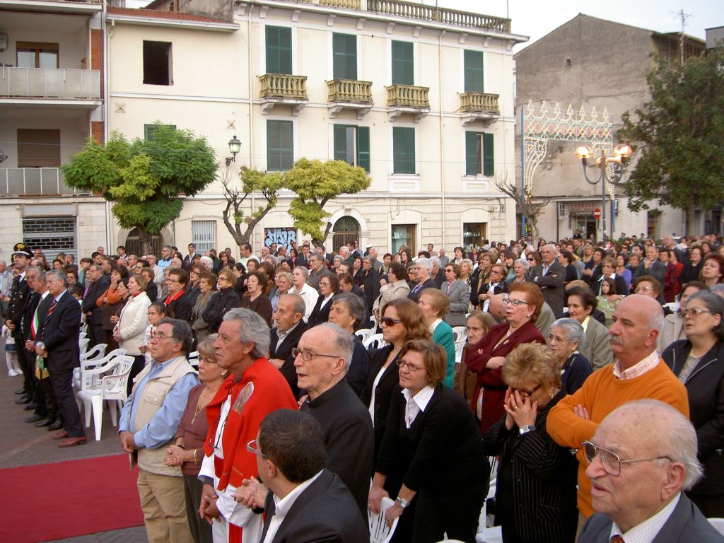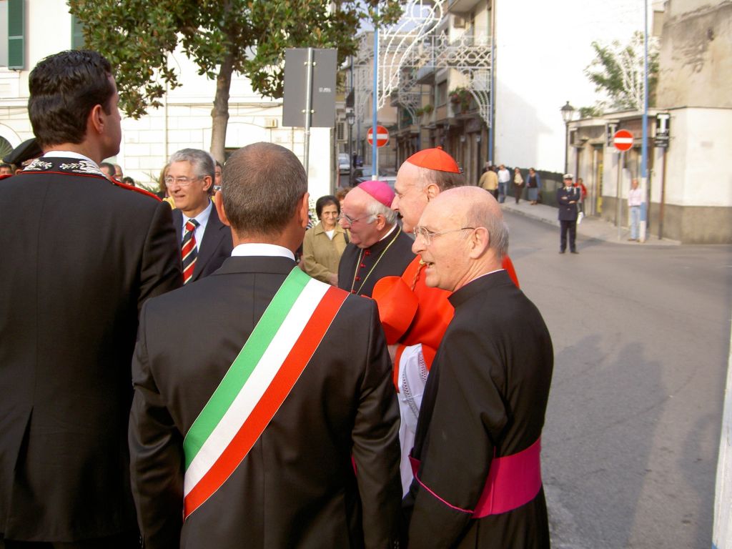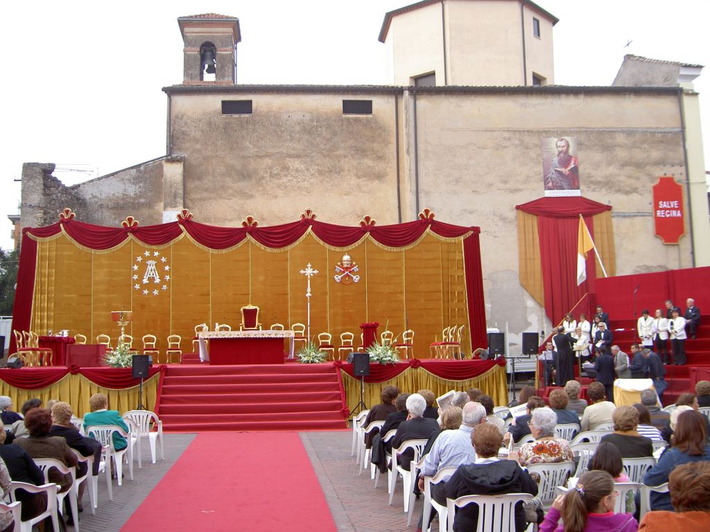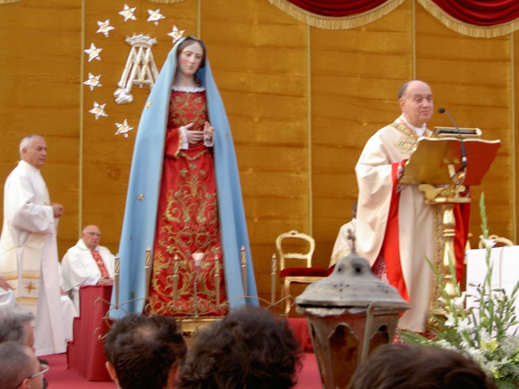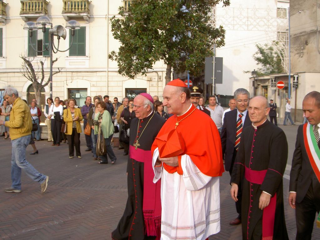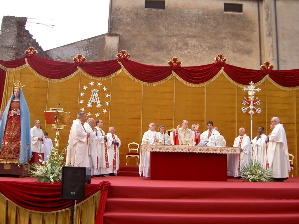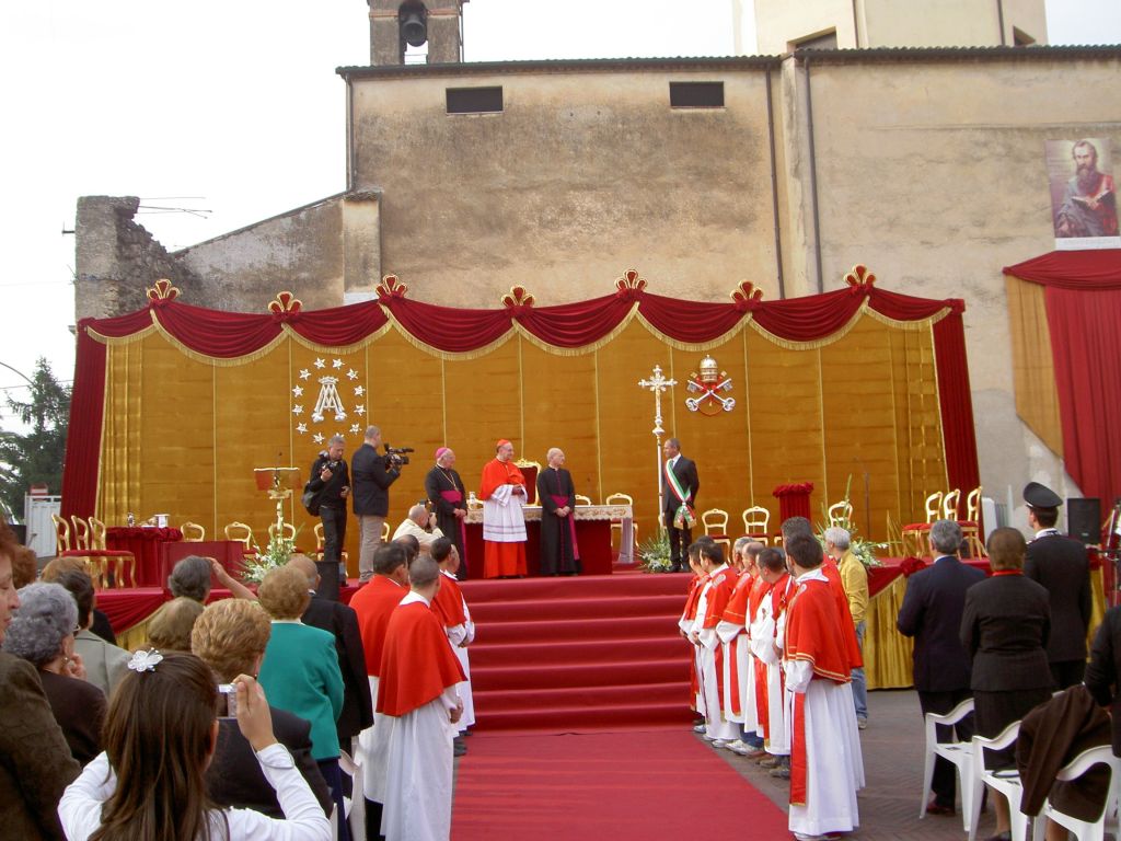 Il gesto di porre la corona aurea sul capo della Madonna vuole essere come la restituzione dell’antica corona che fu rubata alcuni anni fa da mani ignote. Nell’archivio della Cattedrale c’è una immaginetta, donata dal dott. Massimiliano Maglione, raffigurante la Madonna adornata con una corona di stile imperiale. La cerimonia è iniziata con la processione della statua della Madonna dalla Cattedrale fino a piazza A. De Gasperi, dove è stato allestito un palco per la celebrazione della Santa Messa, presieduta da S.E.Card. Angelo Comastri, con il Vescovo Mons. Luca Brandolini e con tutti i sacerdoti della città e della zona pastorale di Pontecorvo. Durante la celebrazione, con il rito della incoronazione, il Card. Comastri ha posto la corona sul capo della statua della Madonna. Al termine, dopo una breve processione per le vie del centro, la statua è rientrata in Cattedrale. La corona, in oro e pietre preziose, è stata realizzata con il contributo di tanti fedeli sia in denaro che con loro oggetti d’oro.