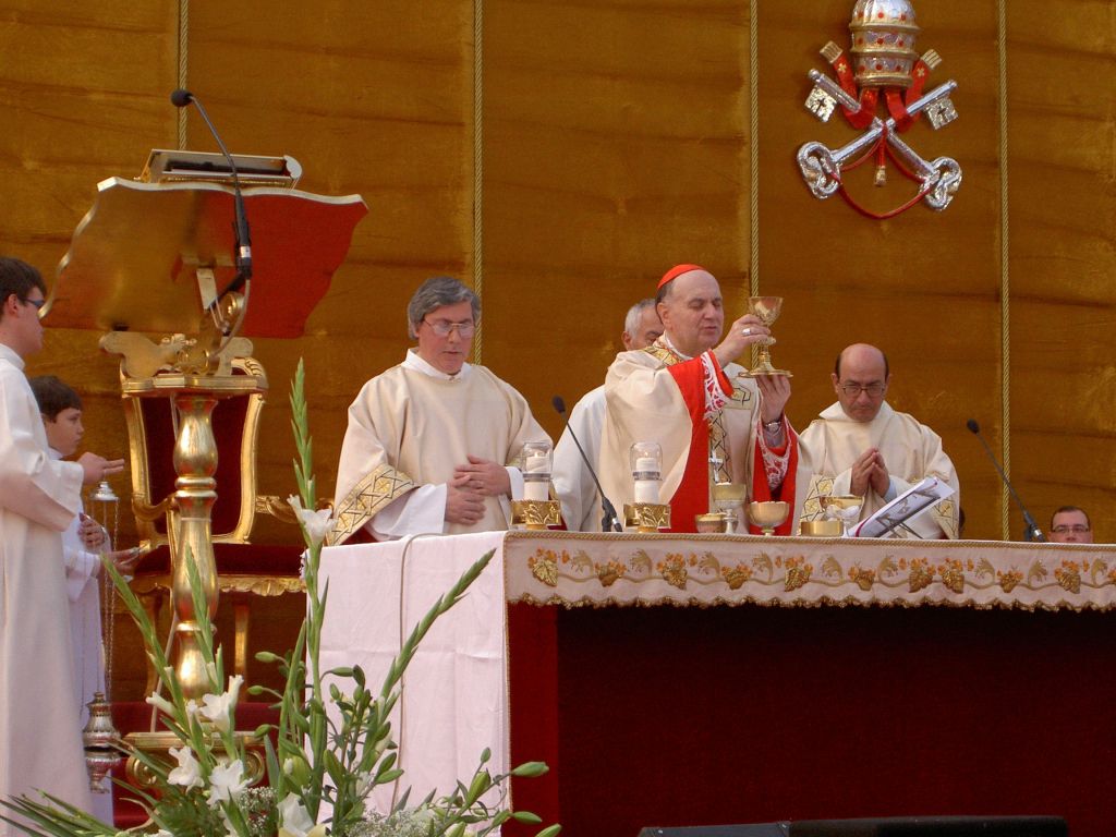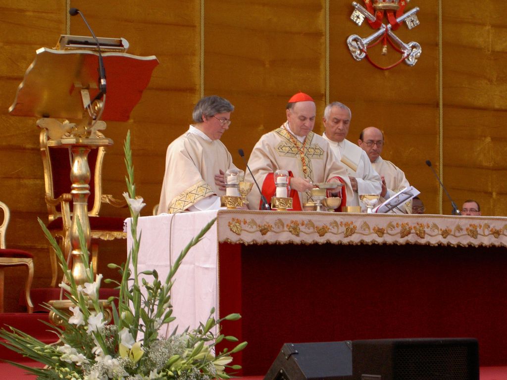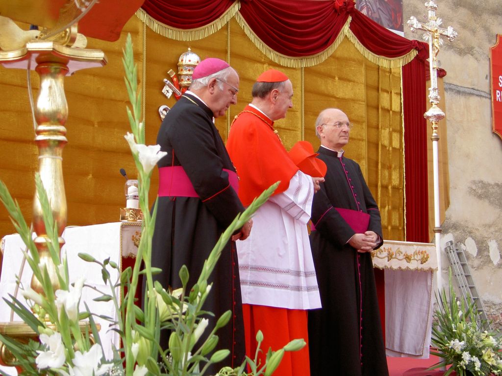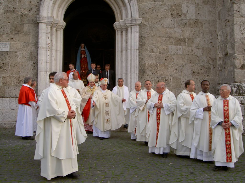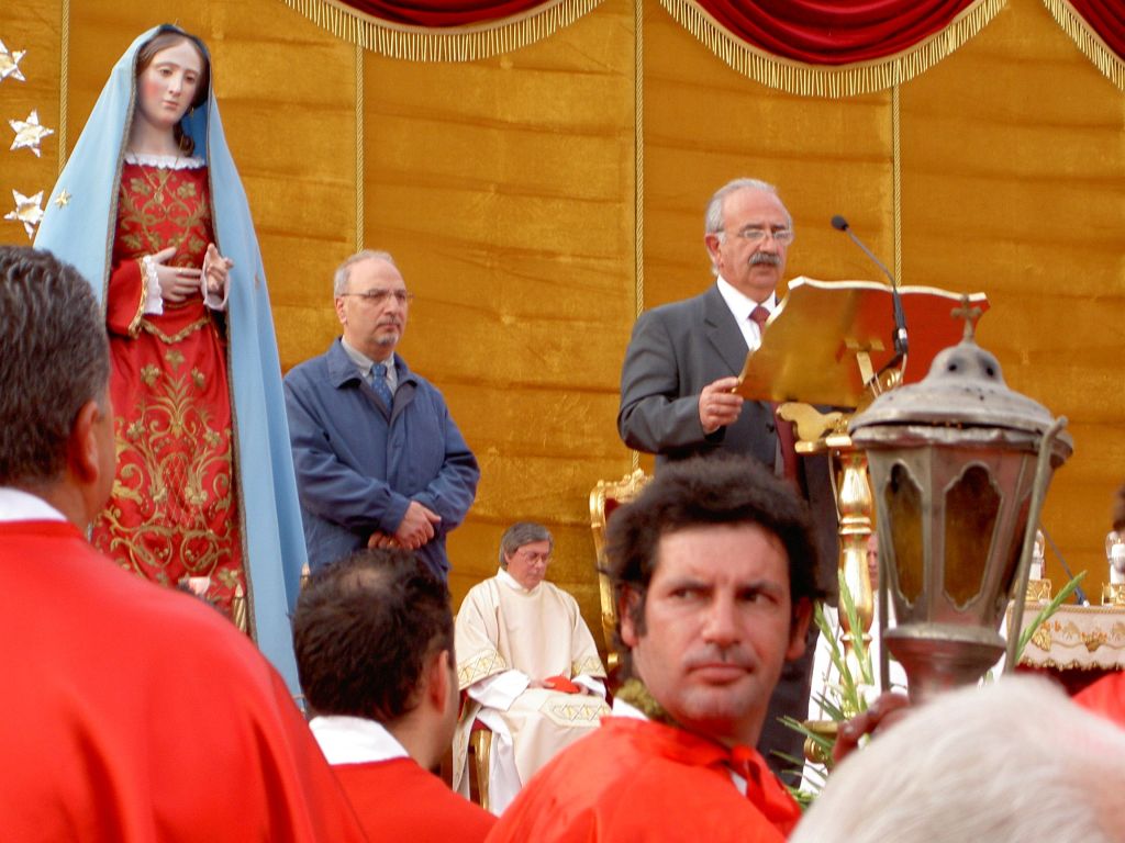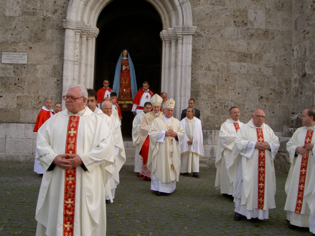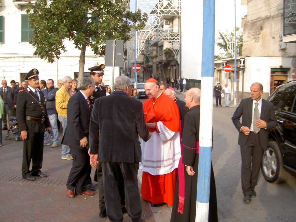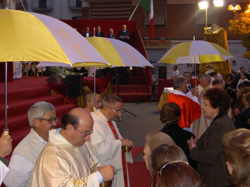 Il gesto di porre la corona aurea sul capo della Madonna vuole essere come la restituzione dell’antica corona che fu rubata alcuni anni fa da mani ignote. Nell’archivio della Cattedrale c’è una immaginetta, donata dal dott. Massimiliano Maglione, raffigurante la Madonna adornata con una corona di stile imperiale. La cerimonia è iniziata con la processione della statua della Madonna dalla Cattedrale fino a piazza A. De Gasperi, dove è stato allestito un palco per la celebrazione della Santa Messa, presieduta da S.E.Card. Angelo Comastri, con il Vescovo Mons. Luca Brandolini e con tutti i sacerdoti della città e della zona pastorale di Pontecorvo. Durante la celebrazione, con il rito della incoronazione, il Card. Comastri ha posto la corona sul capo della statua della Madonna. Al termine, dopo una breve processione per le vie del centro, la statua è rientrata in Cattedrale. La corona, in oro e pietre preziose, è stata realizzata con il contributo di tanti fedeli sia in denaro che con loro oggetti d’oro.