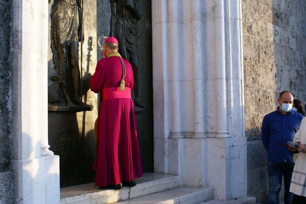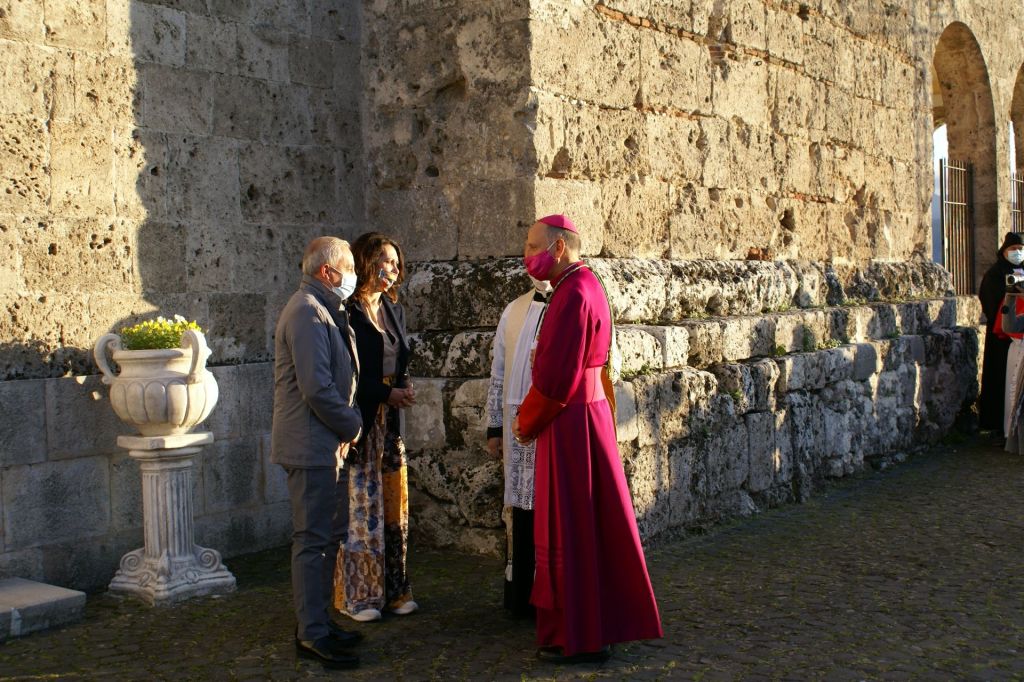 Nel giorno di San Francesco d’Assisi è iniziata, nella Concattedrale di San Bartolomeo, la visita pastorale del Vescovo Gerardo per la zona pastorale di Pontecorvo. Tutti i sacerdoti della zona pastorale con numerosi fedeli hanno accolto l’arrivo del Vescovo sul sagrato della nostra Concattedrale. Anche il tempo è stato clemente donandoci una bella giornata di sole. Dopo il rito di accoglienza da parte dell’Arciprete don Eric, è stato emozionante il tocco del pastorale sul portale di bronzo della chiesa che ci rimandava a Gesù Buon Pastore che bussa con discrezione al nostro cuore e ci chiede l’amore. All’ingresso il Vescovo ha baciato il Crocifisso e benedetto con l’acqua santa i fedeli presenti. Si è recato poi nella Cappella del Santissimo per una breve adorazione. Dopo un breve discorso di presentazione della Visita, davanti all’icona che ne rappresenta lo spirito, tutti i sacerdoti si sono preparati per la Celebrazione Eucaristica Solenne, al termine della quale il Vescovo ha impartito a tutti i fedeli presenti la Benedizione Apostolica con annessa Indulgenza Plenaria. La celebrazione è stata allietata dalla corale “San Giorgio Martire” di San Giorgio a Liri, diretta dal M°. Simone Palazzo.