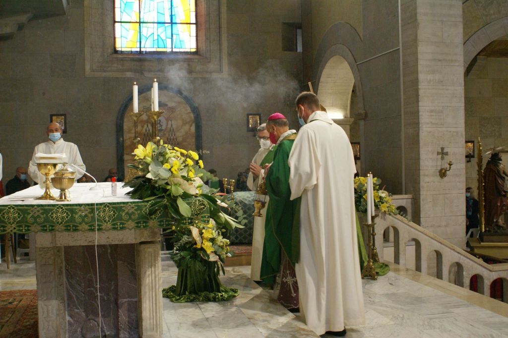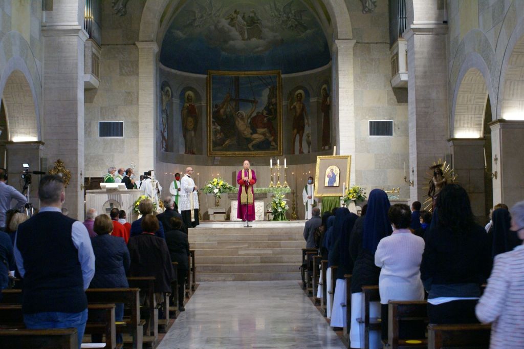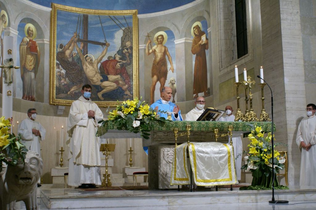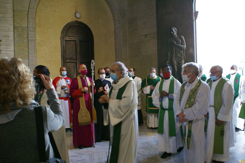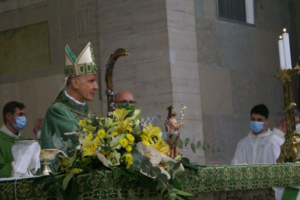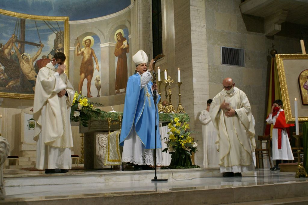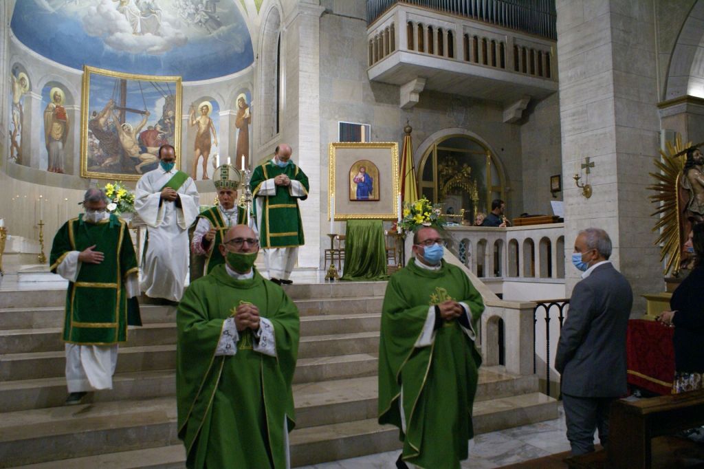 Oggi, 11 ottobre, con la Celebrazione Eucaristica delle 10,30 il Vescovo ha concluso la sua prima Visita Pastorale per la Parrocchia di San Bartolomeo Apostolo e la Parrocchia di San Paolo. A concelebrare con il Vescovo erano presenti i parroci don Eric e don Lucio, il viceparroco di san Bartolomeo don Fortunato e i sacerdoti della Congregazione dei Dottrinari. La Corale Polifonica della Basilica Cattedrale, diretta per l’occasione dall’Arciprete Emerito Mons. Luigi Casatelli, ha eseguito i canti liturgici. Al termine della Celebrazione, il Vescovo ha donato alle due parrocchie una icona con il simbolo della Visita Pastorale: Gesù Buon Pastore.