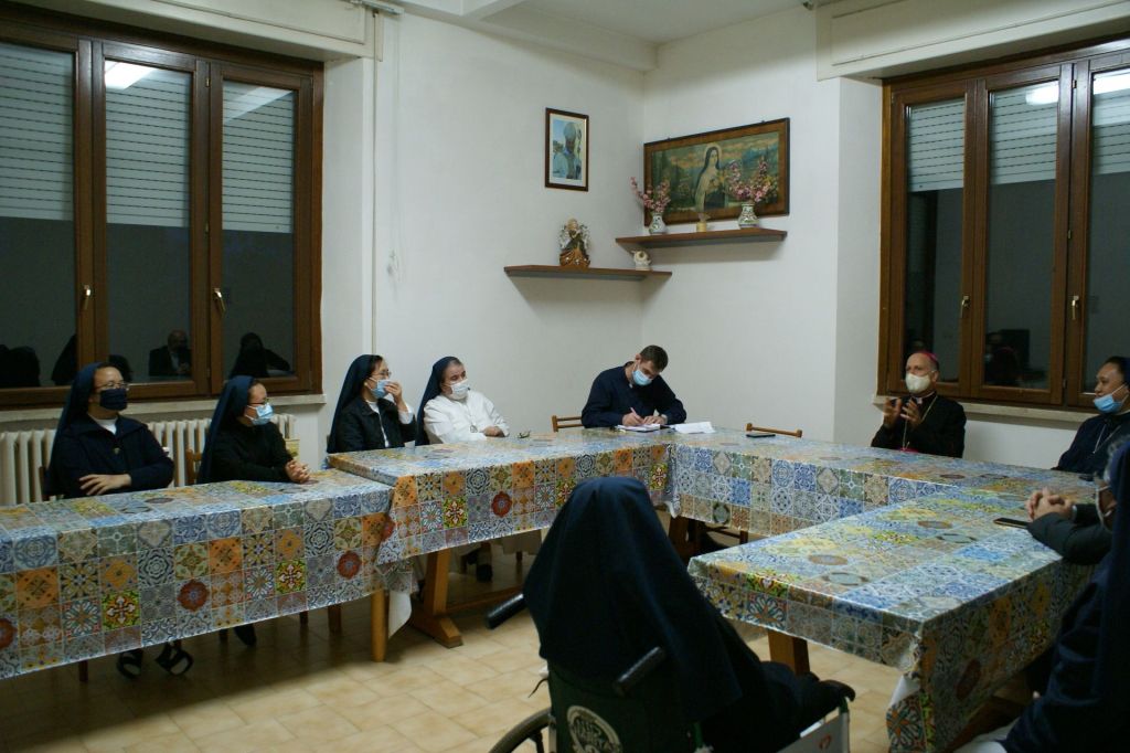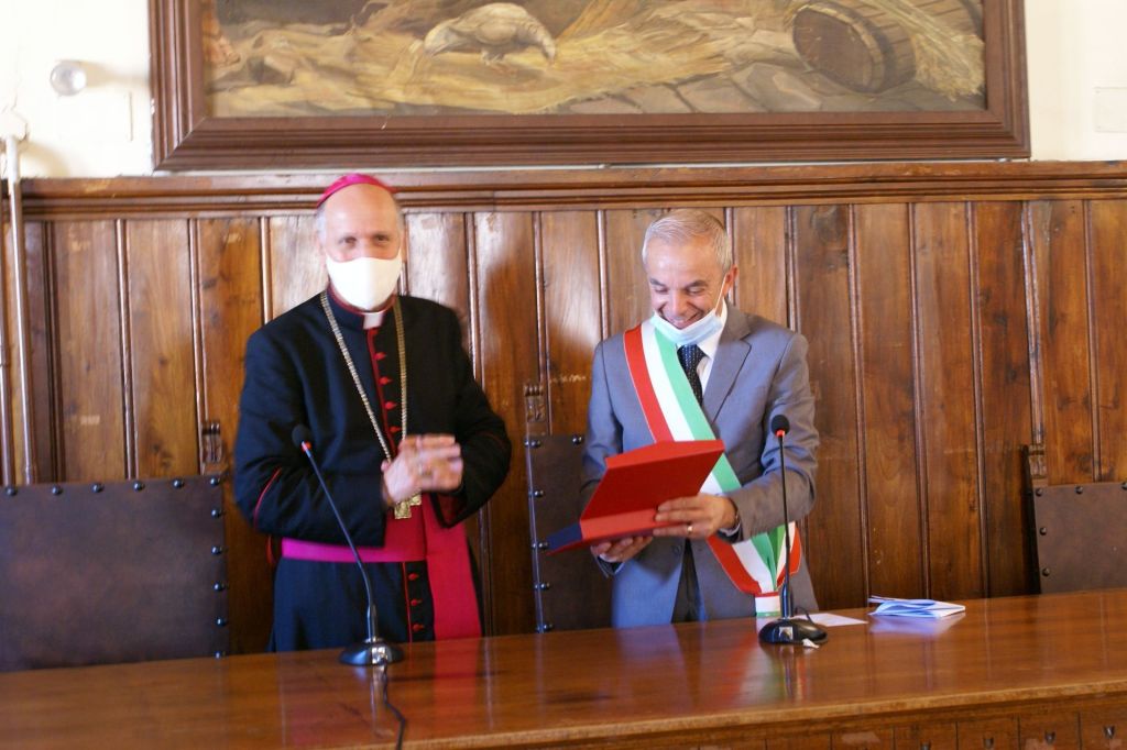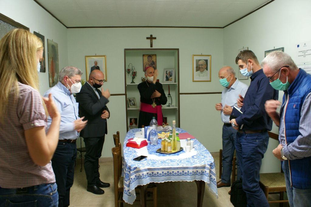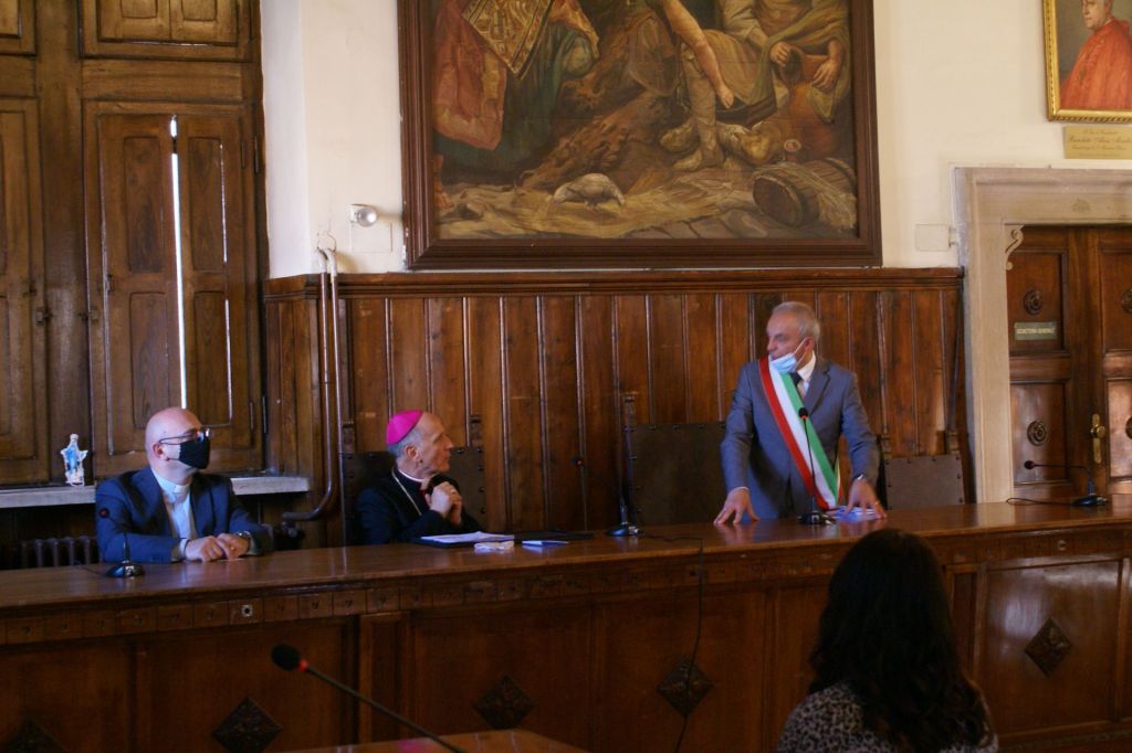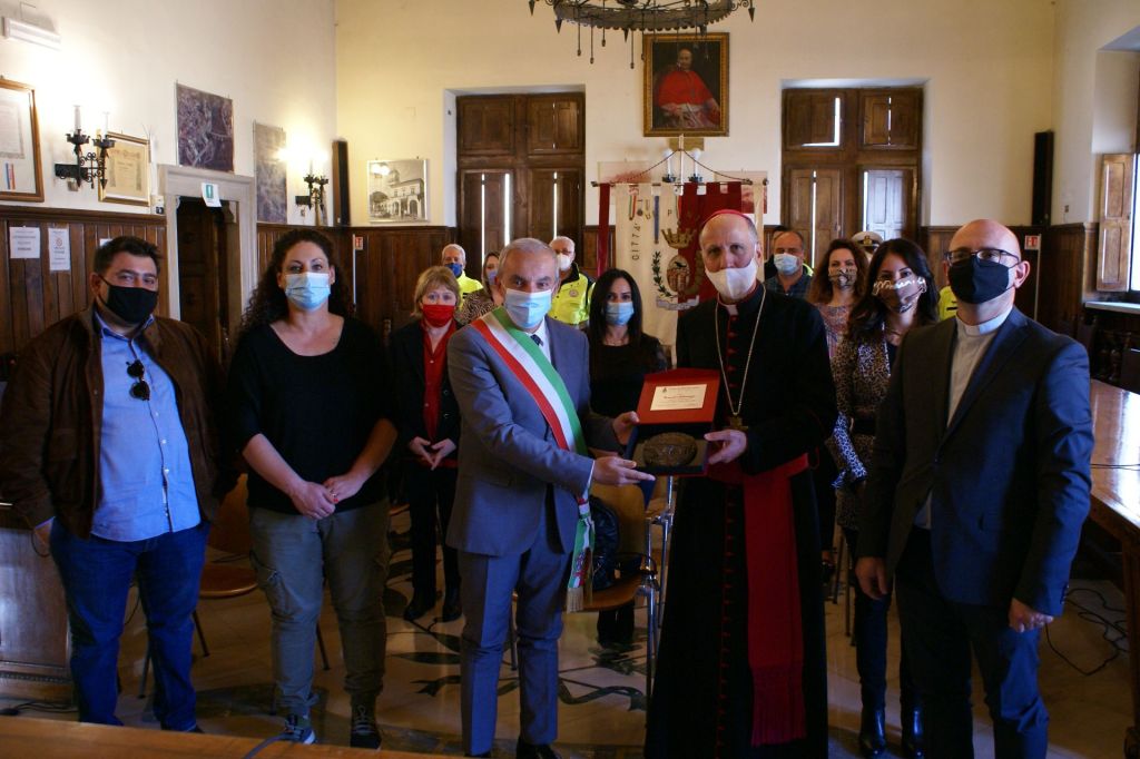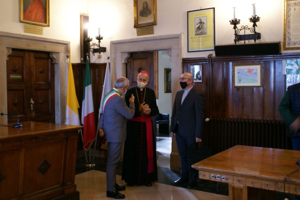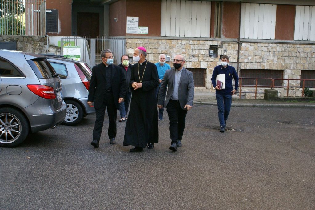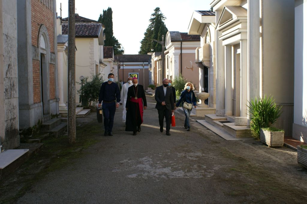 Numerosi impegni hanno riempito la prima giornata della Visita pastorale del nostro Vescovo Mons. Gerardo. Alle ore 16,00 è stato ricevuto dalle autorità civili: il sindaco Anselmo Rotondo e la giunta comunale hanno accolto il Vescovo nella Sala Consiliare. Dopo lo scambio dei doni, il Vescovo ha firmato il registro degli ospiti. Alle 17,00 Santa Messa in commemorazione di tutti i defunti al Cimitero Comunale di Pontecorvo. Hanno concelebrato con il Vescovo tutti i sacerdoti della città e i canti sono stati eseguiti dalla Corale Polifonica della Cattedrale. Successivamente il Vescovo ha fatto visita al centro zonale della Caritas di Pontecorvo e poi alle Suore Missionarie della Fede, presso il Centro Pastorale del Sacro Cuore.