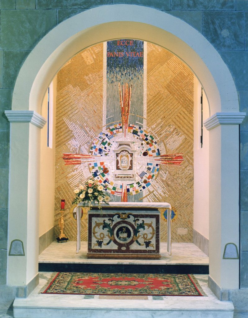 Il mosaico della Cappella del Santissimo Sacramento è stato realizzato in occasione del Giubileo del 2000 dal maestro Gerardo Della Torre, docente presso l’Istituto d’Arte di Sora. L’artista ha scelto con cura marmi e pietre vitree trasformandoli in una sinfonia di colori capaci di essere portatori di messaggi di spiritualità. Fa da sfondo al paliotto policromo dell’altare settecentesco.