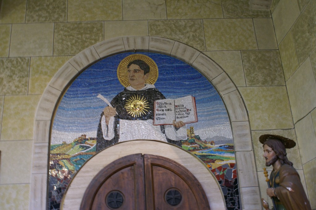 Altri due piccoli mosaici si trovano nelle lunette superiori delle porte di accesso alla Cappella di San Grimoaldo e alla Sacrestia. Il primo rappresenta il santo, il secondo San Tommaso d’Aquino. Anche queste due opere sono state realizzate dal maestro Della Torre.