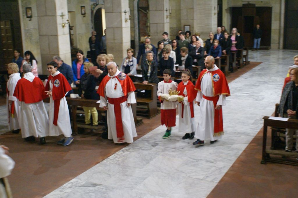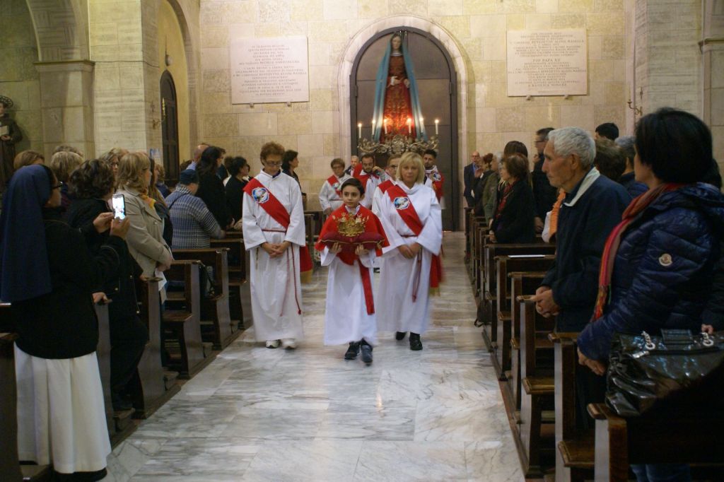 Nell’ultima domenica di ottobre è ormai consuetudine onorare la “Madonna della Misericordia”, e ricordare la sua incoronazione avvenuta 11 anni fa dal Card. Comastri in una suggestiva celebrazione religiosa. La corona d’oro è stata a suo tempo realizzata con il contributo di tantissimi fedeli. Quest’anno, durante la Celebrazione Solenne delle ore 17,30, l’onore di depositare la corona sul capo della Madonna è toccato a don Fortunato, nostro nuovo Vicario Parrocchiale, che, nell’occasione, è stato presentato alla comunità. La Celebrazione Eucaristica, presieduta dall’ex-parroco don Luigi e concelebrata dal Parroco don Eric e dal Vicario don Fortunato, è stata allietata dai canti della Corale Polifonica della Cattedrale.