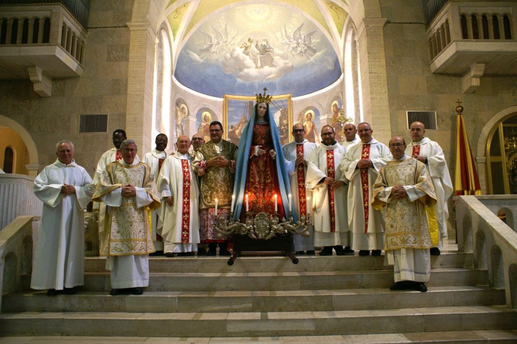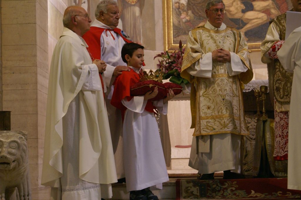 Dopo il concerto delle corali parrocchiali, le manifestazioni in onore della Madonna della Misericordia, che ricordiamo quest’anno è il decimo anniversario della sua incoronazione, si sono concluse domenica scorsa con la celebrazione della Messa Solenne alle ore 17 in Cattedrale. Alla celebrazione, presieduta dal parroco di Aquino don Tommaso, hanno partecipato i parroci delle chiese di Pontecorvo: don Luigi, don Eric, don Lucio e don Maurice. Erano presenti anche don Marcello, viceparroco, don Natalino, padre Nicolas e don William, rettore del Seminario. Alla fine della Messa, don Tommaso ha posto sul capo della statua della Madonna la corona d’oro e pietre preziose, realizzata dieci anni fa con il contributo dei fedeli di Pontecorvo. Purtroppo la prevista processione per le vie della città non ha avuto luogo per le avverse condizioni del tempo.