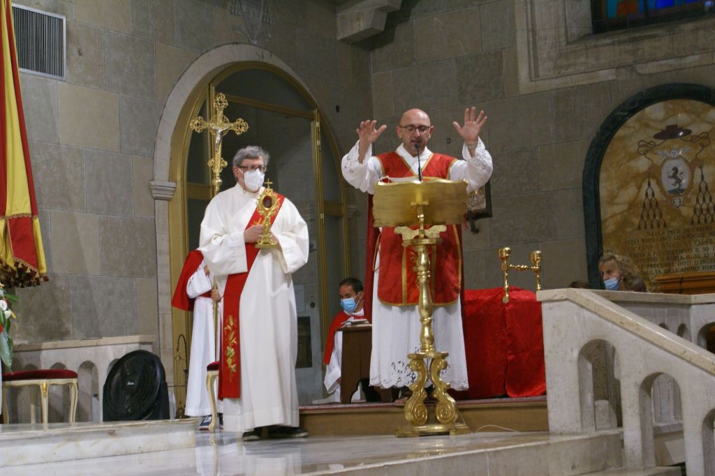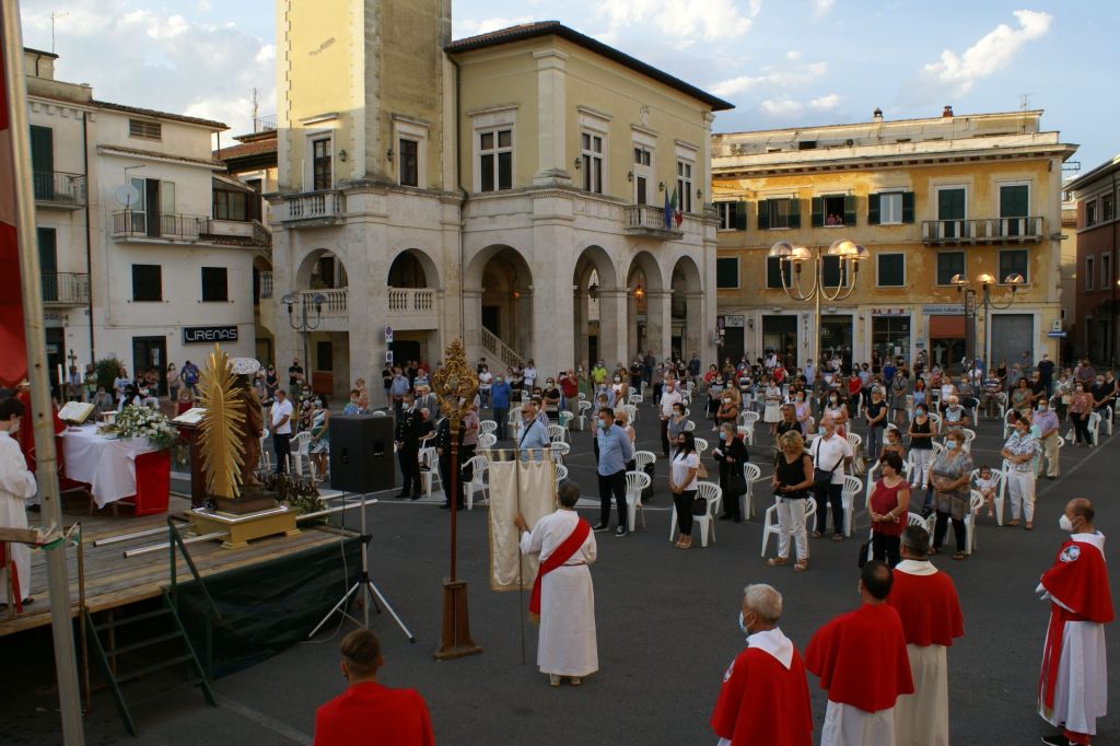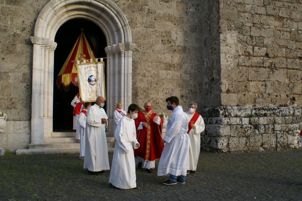 Nell’ultimo giorno del triduo dedicato al nostro Santo Patrono, dopo la Messa Solenne delle 19,00 doveva svolgersi la processione per le vie della città. Purtroppo l’inclemenza del tempo ha costretto ad un cambio di programma: la statua è stata portata sul sagrato della chiesa per una benedizione simbolica a tutta la città di Pontecorvo.