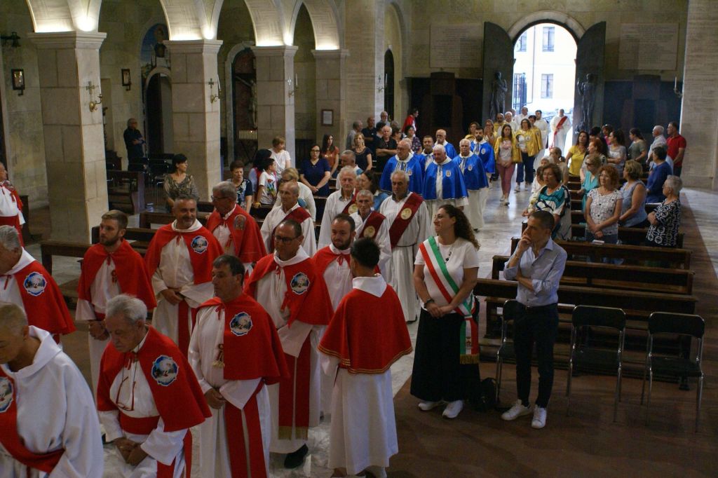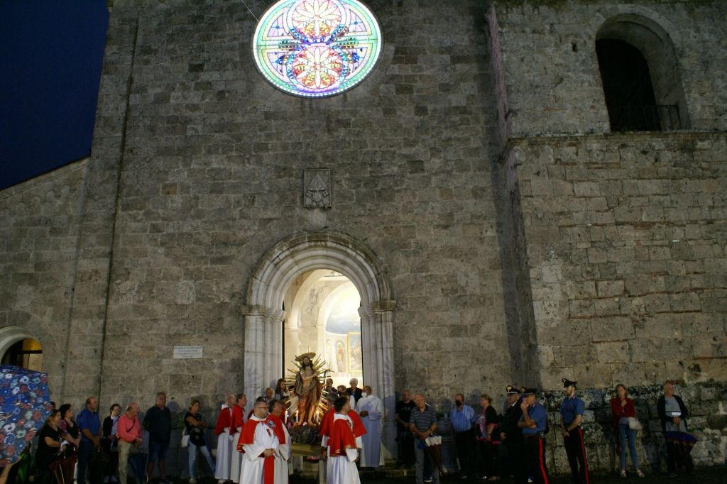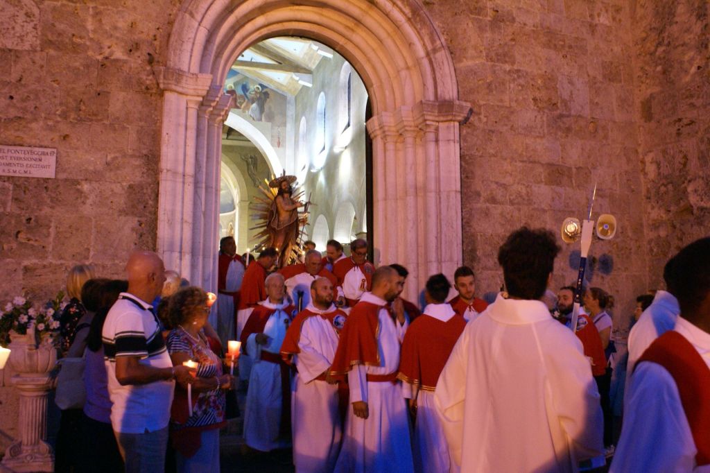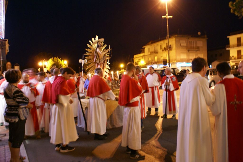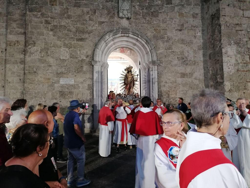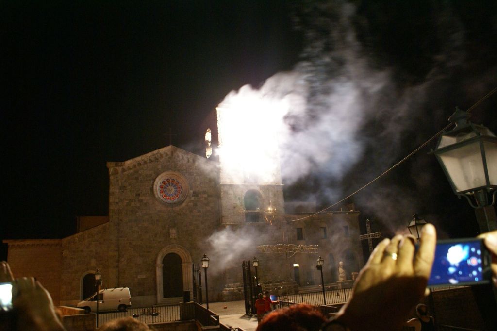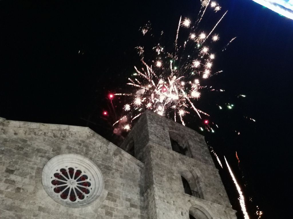 Quest’anno la celebrazione della vigilia di questa festa patronale ha avuto una piacevole sorpresa. Dopo la bruttissima esperienza dell’arciprete iniziata la sera del 19 agosto con la sanguinosa aggressione subita, ormai a tutti nota e con il ricovero in ospedale, nessuno avrebbe mai pensato che la sera del 28 agosto, egli avrebbe potuto celebrare l’Eucaristia. Invece, con gioia e sorpresa di tutti, è stato visto entrare in cattedrale, anche se ancora con i segni visibili dell’aggressione. I fedeli radunati in chiesa, piacevolmente sorpresi lo hanno salutato con un fragoroso applauso. All’inizio, egli, dopo aver esortato tutti al perdono cristiano, ha continuato la celebrazione. Non ha potuto partecipare solo alla processione. Al termine i numerosi fedeli hanno potuto ammirare, insieme a don Luigi, i fuochi pirotecnici bellissimi, che hanno superato ogni aspettativa, e che hanno concluso la festa.