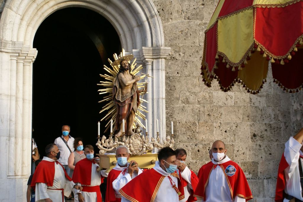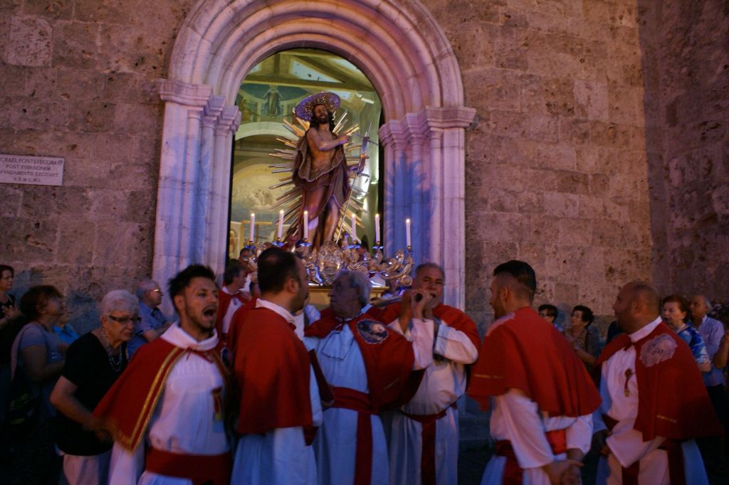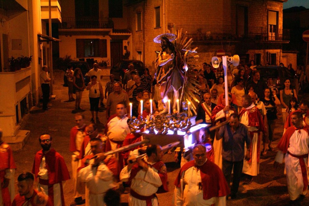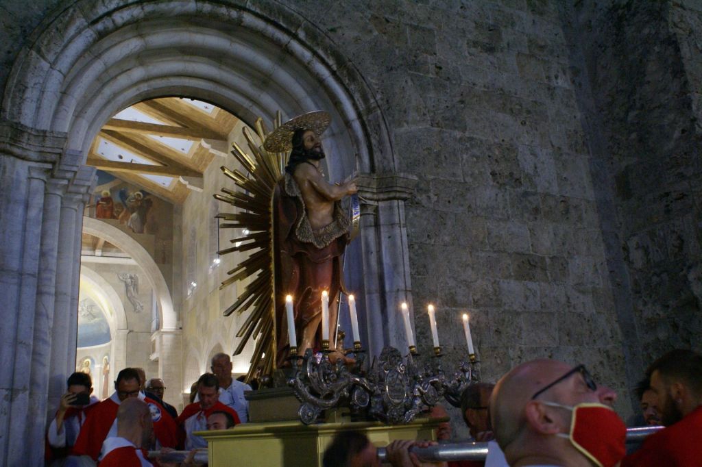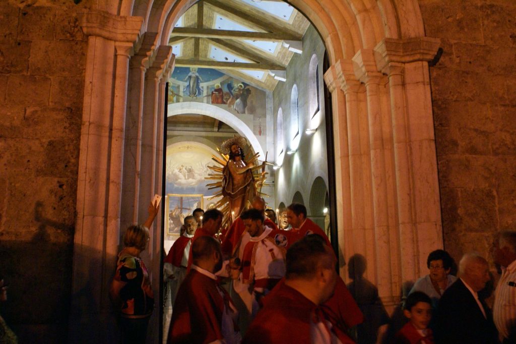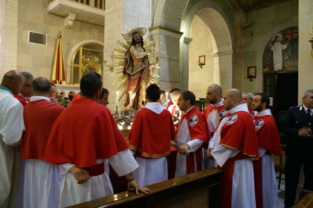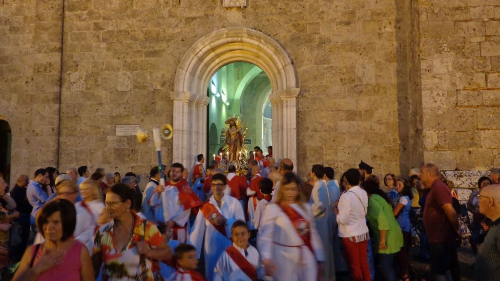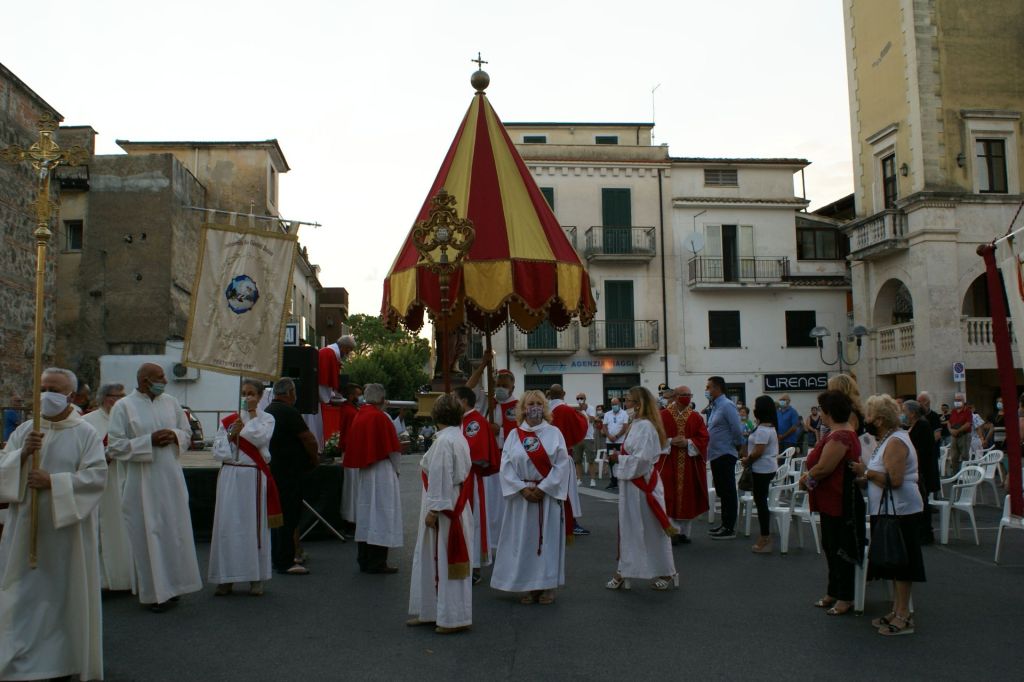 Quest’anno la celebrazione della vigilia di questa festa patronale ha avuto una piacevole sorpresa. Dopo la bruttissima esperienza dell’arciprete iniziata la sera del 19 agosto con la sanguinosa aggressione subita, ormai a tutti nota e con il ricovero in ospedale, nessuno avrebbe mai pensato che la sera del 28 agosto, egli avrebbe potuto celebrare l’Eucaristia. Invece, con gioia e sorpresa di tutti, è stato visto entrare in cattedrale, anche se ancora con i segni visibili dell’aggressione. I fedeli radunati in chiesa, piacevolmente sorpresi lo hanno salutato con un fragoroso applauso. All’inizio, egli, dopo aver esortato tutti al perdono cristiano, ha continuato la celebrazione. Non ha potuto partecipare solo alla processione. Al termine i numerosi fedeli hanno potuto ammirare, insieme a don Luigi, i fuochi pirotecnici bellissimi, che hanno superato ogni aspettativa, e che hanno concluso la festa.