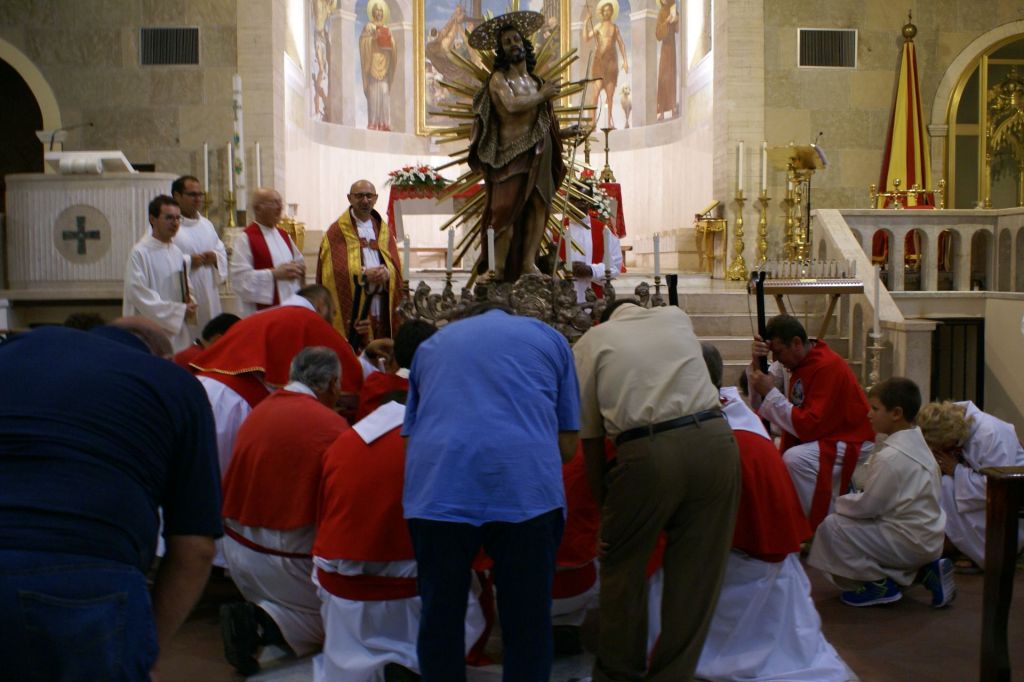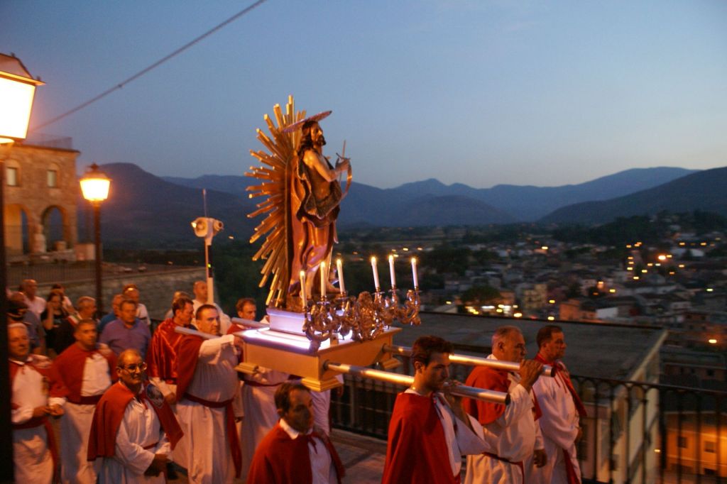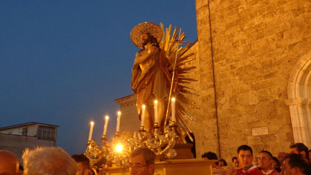 28 agosto, vigilia della festività civile e religiosa del nostro Santo Patrono. Alle 19,00, in Cattedrale, il parroco don Eric ha celebrato una Messa Solenne in onore del Patrono. Durante la celebrazione i membri della Confraternita di San Giovanni Battista hanno proclamato il giuramento e il rinnovo delle promesse. Ospiti d’onore della manifestazione le Confraternite dei paesi vicini Castrocielo, Caprile, Aquino e San Giovanni Incarico. La Corale Polifonica della Cattedrale ha eseguito i canti liturgici di accompagnamento. Al termine la statua del Santo è stata portata in processione per le vie dalla città.