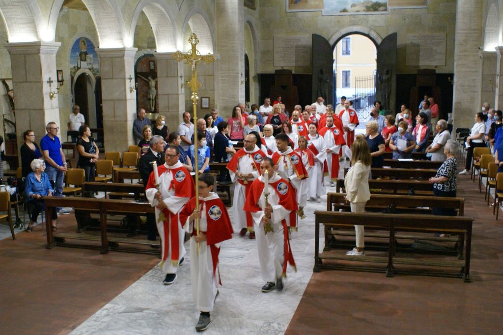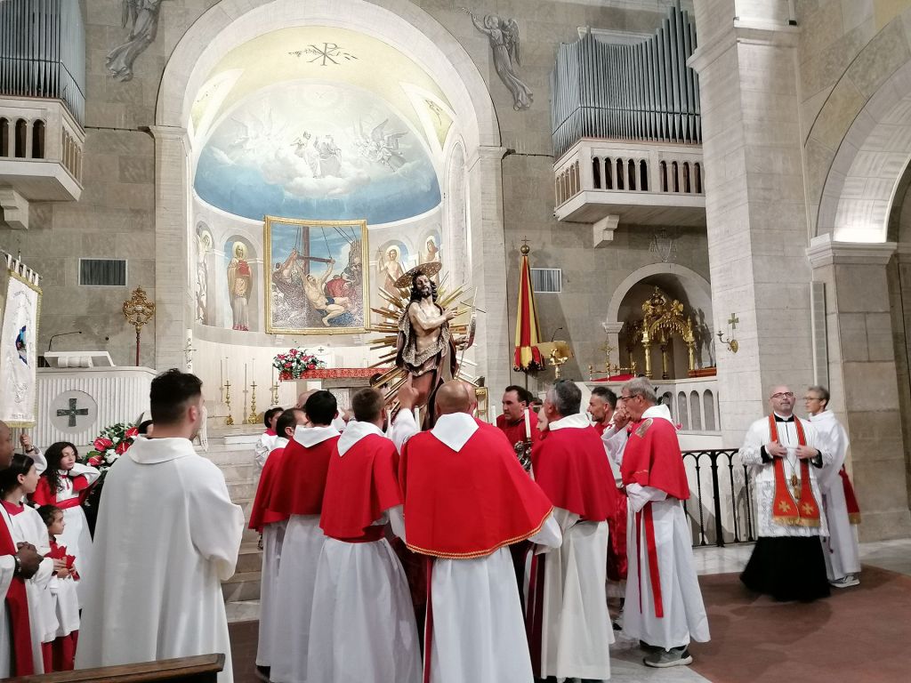 Le manifestazioni religiose in onore del nostro Santo Patrono si sono concluse oggi con la celebrazione della Messa Solenne delle 18,30. Nel corso della celebrazione, allietata dai canti eseguiti dalla Corale Polifonica della Cattedrale, il parroco ha proclamato l’atto di affidamento al Santo dei bambini nati in quest’ultimo anno. I numerosi bimbi presenti con i loro genitori hanno ricevuto la benedizione con l’Acqua Santa e anche una piccola medaglietta ricordo.
