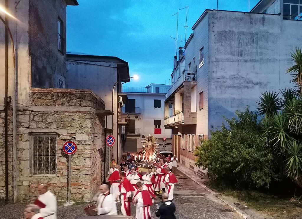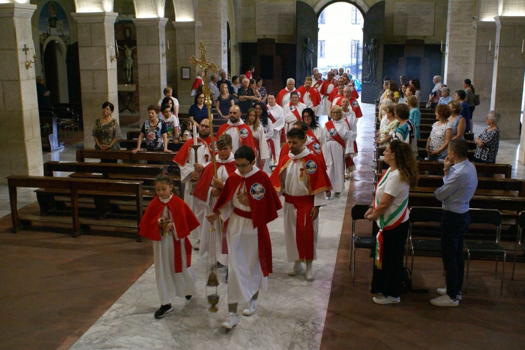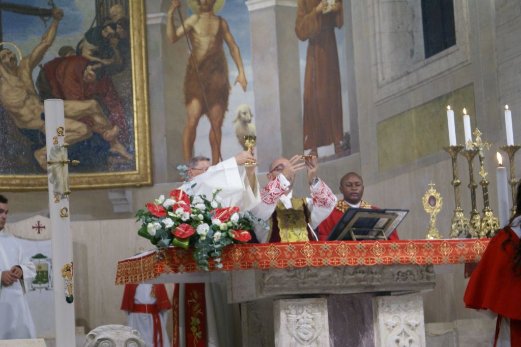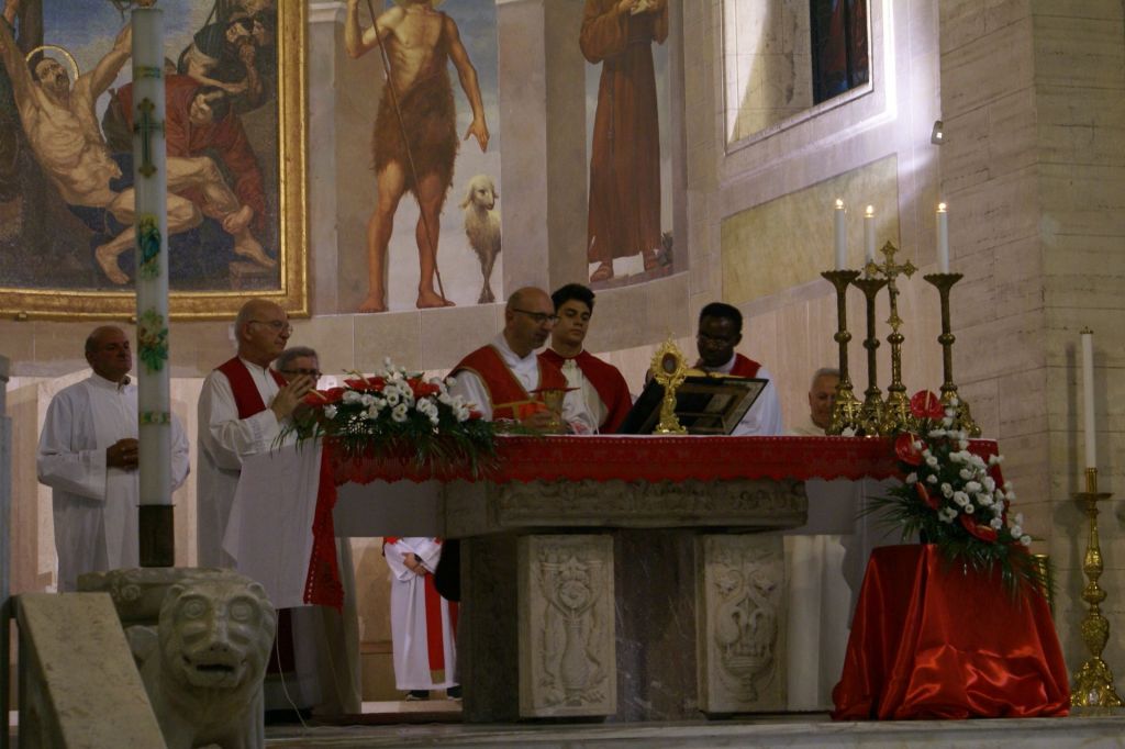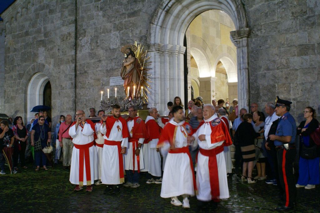 28 Agosto 2024, vigilia della solennità del Martirio di San Giovanni Battista, patrono della nostra città di Pontecorvo. Le funzioni liturgiche sono iniziate alle 19,30 con la Messa Solenne celebrata dal parroco don Eric e con Padre Cedric della Congregazione dei Padri Dottrinari di Pontecorvo. La Corale Polifonica della Cattedrale ha eseguito i canti liturgici di accompagnamento. Durante la celebrazione tutti i membri della Confraternita di San Giovanni Battista, riuniti ai piedi dell’altare, hanno rinnovato le promesse e il giuramento. Al termine della funzione, la statua del Santo Patrono, accompagnata dai numerosi fedeli presenti, è stata portata in processione per le vie della città. Il rientro della statua in Cattedrale è stato accolto da un breve spettacolo di fuochi pirotecnici.
