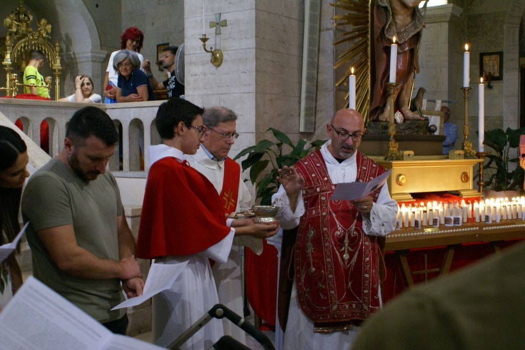 Le funzioni religiose in onore del nostro Patrono San Giovanni Battista si sono concluse ieri sera, 29 Agosto, con la Messa Solenne delle 18,30 celebrata dal Parroco don Eric alla presenza di numerosi fedeli e giovani coppie di sposi con i loro figli nati nel corso del corrente anno. Durante la Celebrazione, riuniti ai piedi dell’altare, genitori e figli hanno rinnovato le promesse battesimali mentre il parroco li benediceva con l’acqua santa. Al termine del rito, il parroco don Eric ha distribuito a tutti un piccolo ricordino.